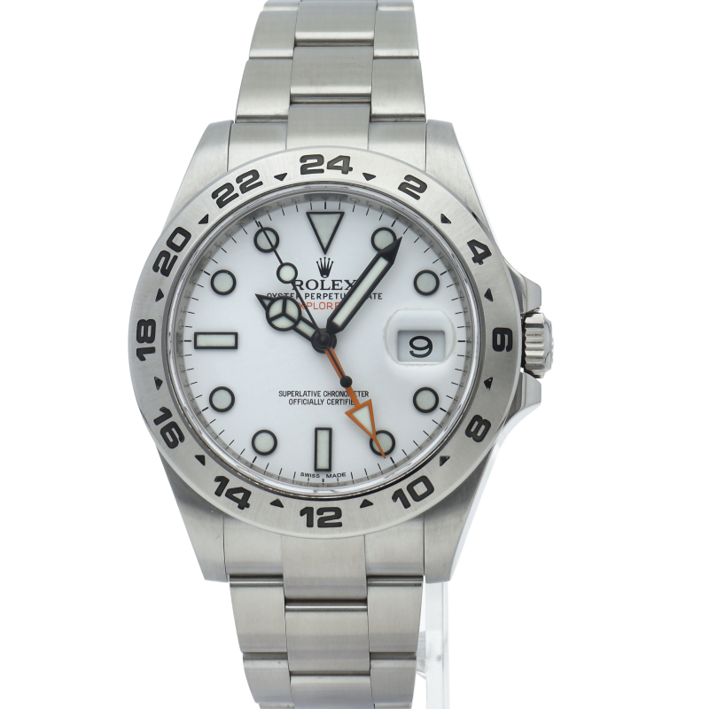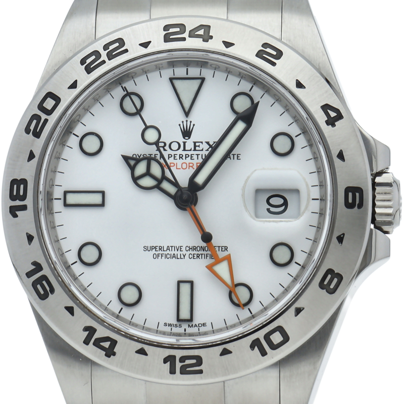 | The new "Explorer 2" announced at Basel in 2011. The case size has been increased to 42 mm, and it features a 24-hour orange hand reminiscent of the original Explorer 2. |