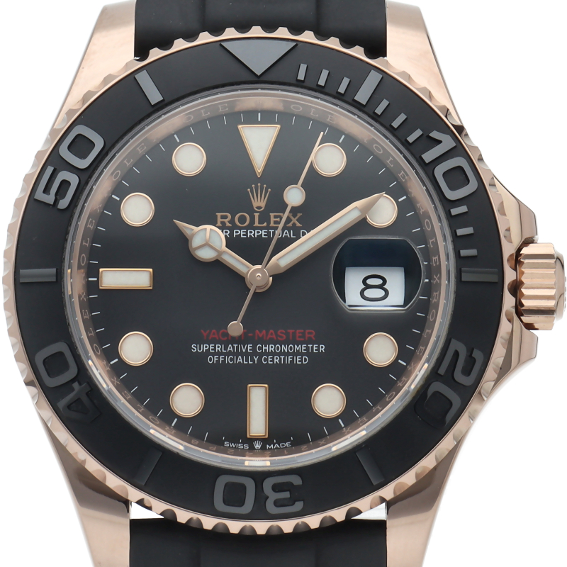 | "Oyster Perpetual Yacht-Master 40" with function and style for navigation and sailing. The bracelet is equipped with the "Oysterflex bracelet" originally developed and patented by Rolex. In addition, it is equipped with caliber 3235, which has a 70-hour power reserve and is highly resistant to magnetic fields and shocks. |