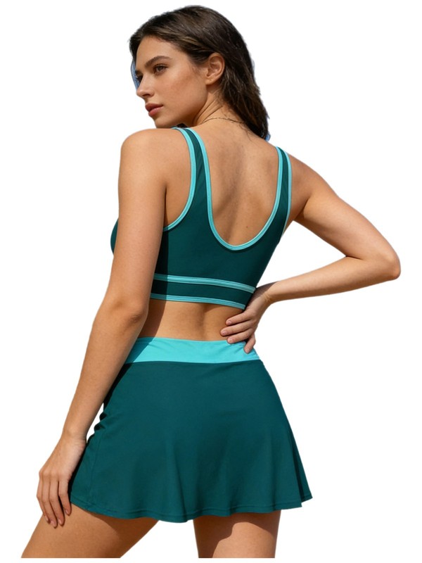 The sporty color-block pattern is on-trend, adding a modern and fashionable touch to your beach look.