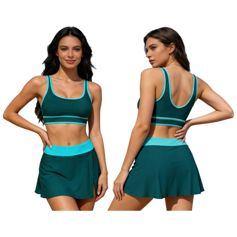 The two-piece design offers flexibility and comfort, allowing you to move freely during swimming, snorkeling, or other water sports.