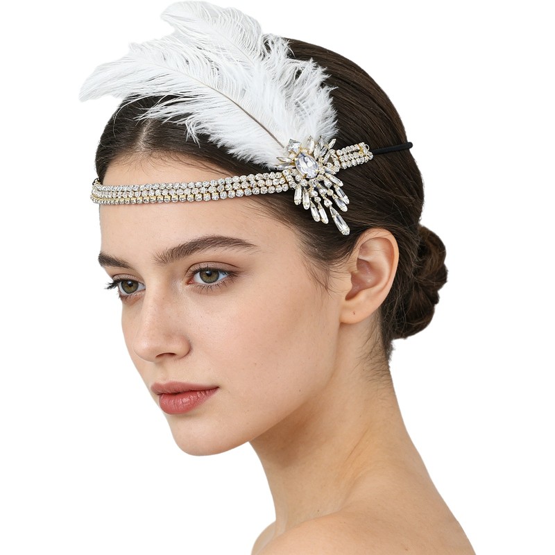 US Womens Shiny Rhinestones Headpiece 1920s Headband Feather Elastic Band Chain