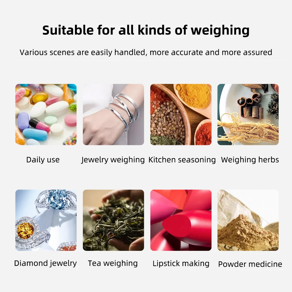Suitable for all kinds of weighing, jewelry weighing, daily weighing, medicinal material weighing, powder weighing
