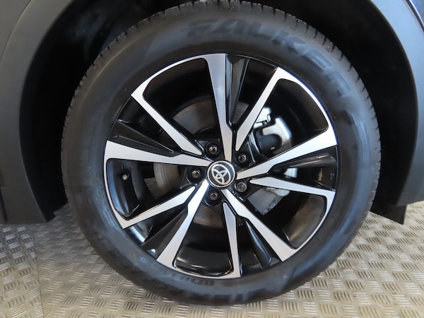 ..12.3'' Digital Combimeter, 12.3'' multimedia display screen, 4 rear parking sensors, Acceleration suppression at low speed, Adjustable speed limiter, Blind spot monitor, Bluetooth connectivity, Built-in and cloud navigation, Colour multi information display, Digital speedometer, Digital tachometer, eCall emergency call system, Electric power steering, Emergency driving stop system, Emergency steering assist, Front parking sensors with auto braking, Hybrid system indicator, I/P center cluster X, Instrument finish panel, Intelligent adaptive cruise control, Intelligent parking sensors (objects and vehicle), Lane Departure Alert (LDA) switch on steering wheel, Lane departure alert with steering control, Lane trace assist, Memory on speed limiter, MyT connected services, Power tailgate, Pre collision system with emergency steering assist, Pre collision system with intersection detection, Proactive driving assist (PDA), Push button tailgate release, Rear cross traffic alert, Remote boot door release in cabin, Reversing camera, Reversing camera display in audio screen, Road sign assist - RSA, Safe exit assist, Smart entry and push button start, Smart voice assist, Start and stop, Static guide lines on reversing camera, Toyota Smart Connect multimedia system with wireless Smartphone integration incl Apple CarPlay, Voice recognition, Wireless phone charger, Electric accelerator pedal, Fast charger 32A Mennekes cable, Front and rear stabilizers, Vehicle Stability Control (VSC), 6 speakers, Aux-in connector, DAB Radio (Digital Audio Broadcasting), Front USB Type-C connector, Rear USB Type-C connector, Road events, Toyota touch 2 with go navigation, USB connector integrated with radio and CD player, Anti-jam protection on power windows, Auto dimming rear view mirror, Auto high beam, Auto up and down function on all power windows, Auto wipers, Automatic headlights, Automatic headlights cut-off, Automatic rear flashing hazard lights, Automatically retractable door mirrors, B - Pillar in Black, Black centre air vent, Black painted insert on boot door, Black side air vents, Black wheel arch mouldings, Body colour door handles, Body coloured front bumper, Body coloured rear spoiler, Body coloured roof, Clear headlights design, Door scuff plates, Electric heated door mirrors, Emergency brake-light signal (EBS), exhaust tail pipe and diffuser, Flush front and rear door handles, Follow me home headlights, Front and rear power windows, Fuel caution label, Gloss black door