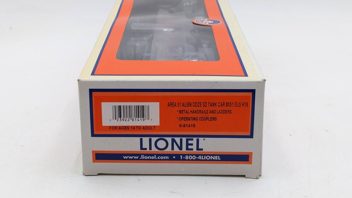 Here is a Lionel 6-81419 O Gauge Alien Ooze Single-Dome Tank Car.
