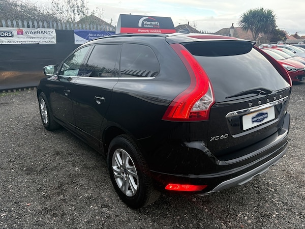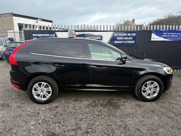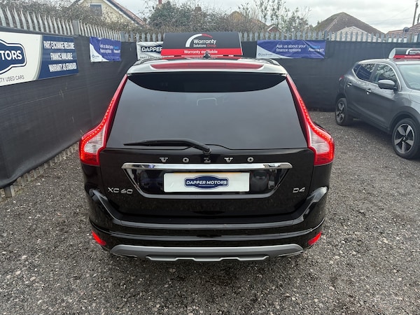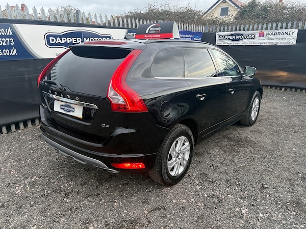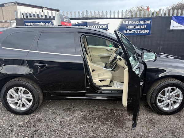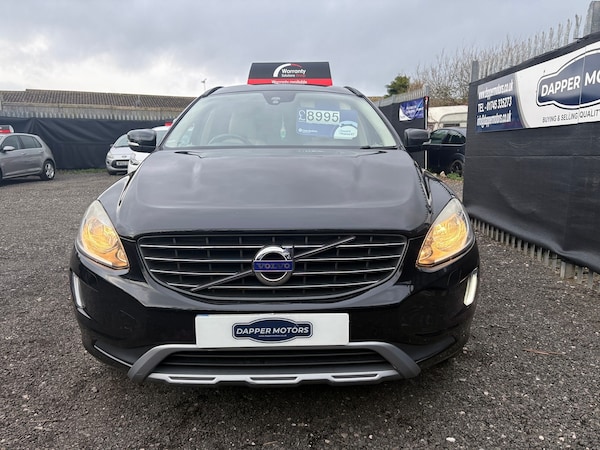 Volvo XC60 D4 (190hp) Start/Stop SE in excellent condition inside and out, with 1 owner from new and FULL SERVICE HISTORY. Fantastic specification including full heated leather interior, colour touchscreen, colour touchscreen DAB media player, stop/start technology, electric opening boot, Bluetooth telephone and music streaming, radar parking sensors, dual zone automatic air conditioning, cruise control, multifunction steering wheel, USB and Aux connection ports, alloy wheels and rear privacy glass.As with all our cars, this vehicle comes with a FRESH 12 MONTH MOT with ALL advisory work completed, fresh oil and filter service, 3 months parts and labour cover as standard and breakdown cover. Part exchange welcome, credit and debit cards accepted, free local delivery (25 miles)VEHICLE REG - DC65 GVZ- COMPETATIVE FINANCE AVAILABLE Click the link below now to try our free finance calculator and personalise the payment options that best work for you! vehicle comes with:Eight speakers, Audio system with CD player that reads MP3 CDs; radio receives AM/FM, digital and RDS, Remote controlled remote boot/hatch/rear door release, Electric boot/hatch pull down, External temperature, Computer includes average speed, average fuel consumption, instantaneous fuel consumption and range for remaining fuel, Alloy trim on dashboard, alloy trim on doors, alloy trim on centre console and leather gearknob, Load restraint, Central door locking: Operated by remote Includes windows and dead bolt, Seat upholstery: leather, Alloy & leather multi-function steering wheel with tilt adjustment and telescopic adjustment, Ventilation system with digital display, air filter and active carbon filter, Secondary ventilation controls with digital display for front passenger, Automatic air conditioning with two climate control zones, Front and rear electric windows with one-touch on two windows, Floor console, Manual smart card/key, Electronic hand brake, Fixed storage box in the boot, Bluetooth includes phone connection and music streaming, Lifting gate rear door, Engine start/stop, Connections for USB (front) and auxiliary audio devices (front), 5.0 inch multi-function display screen(s), 5.0 inch multi-function display screen(s), Chrome/bright trim around side windows, Body colour power door mirrors; heated with integrated indicator lights, Rear radar-type parking distance sensors, Rear radar-type parking distance sensors, Halogen low beam halogen high beam headlights, Front and rear side curtain airbags, Intelligent drivers airbag, intelligent passengers airbag with de-activation switch, Low tyre pressure indicator, Automatic hazard lights, Collision warning system which activates seat belts, activates brake lights and brakes at low speed and includes brake assist; min speed 0 km/h, Roll stability control, Trailer stability program, Anti-theft protection with interior monitoring, Front-wheel drive, Turbo-charger, Fuel system: common rail diesel, Power steering: electro-hydraulic, Particle filter system, Insurance: 28E-T1, Flexible cargo area cover/rear parcel shelf