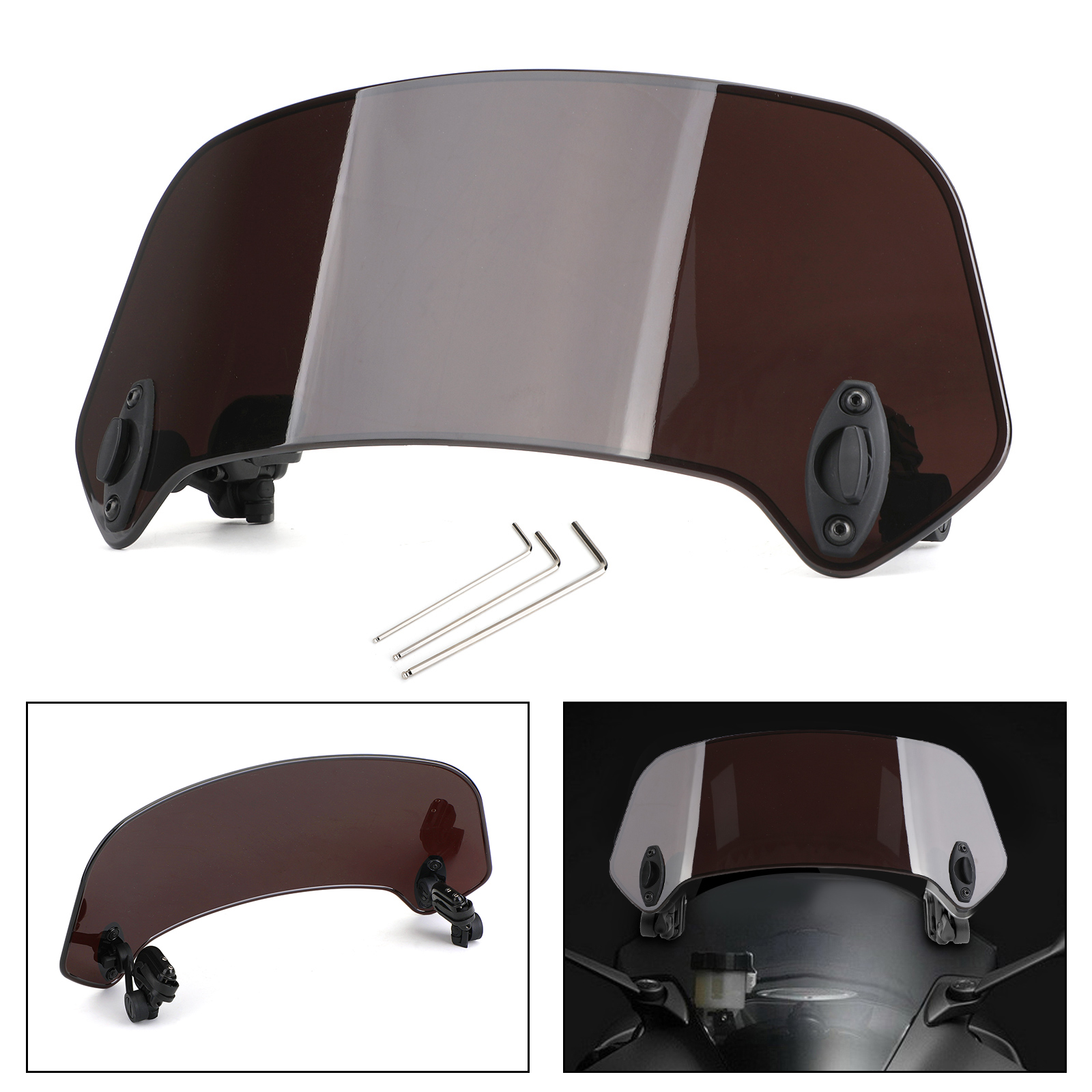 1:Adjustable windshield, fixed on the above of original windshield, heightening for better head protection rider safety.