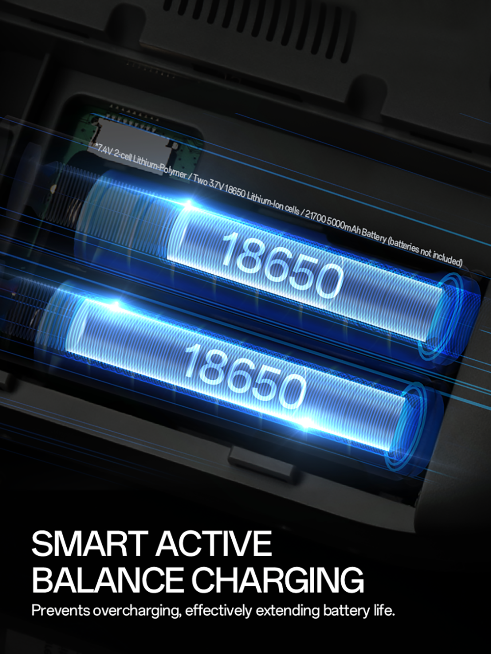 Battery support: 7.4V 6200mAh lithium polymer battery pack/Two 3.7V 18650 lithium battery boxes/7.4V 21700 5000mAh battery (batteries need to be purchased separately)