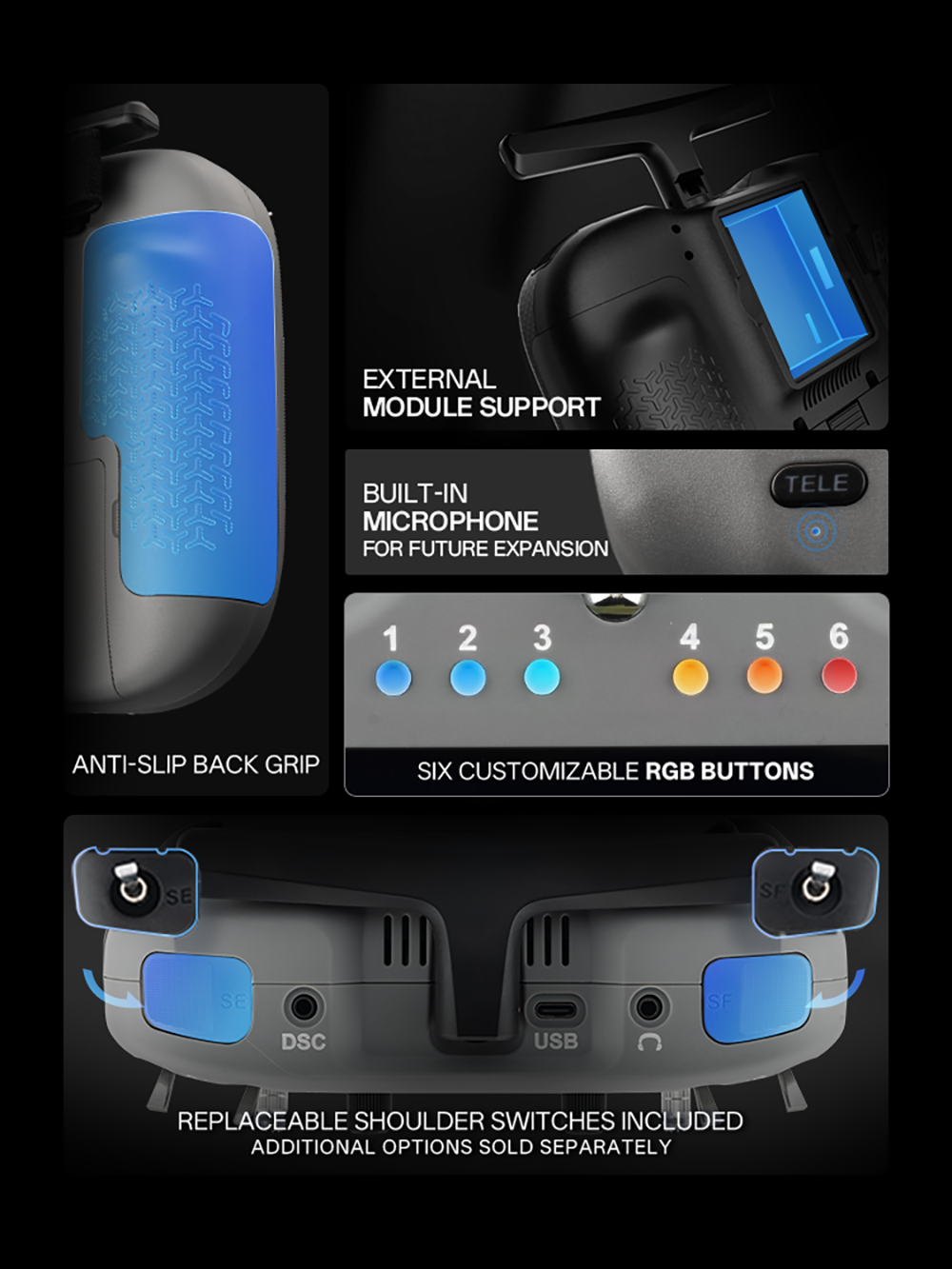 11. Adjustable shoulder toggle switch: preferred by model airplane players, it can also be freely replaced with a button switch.