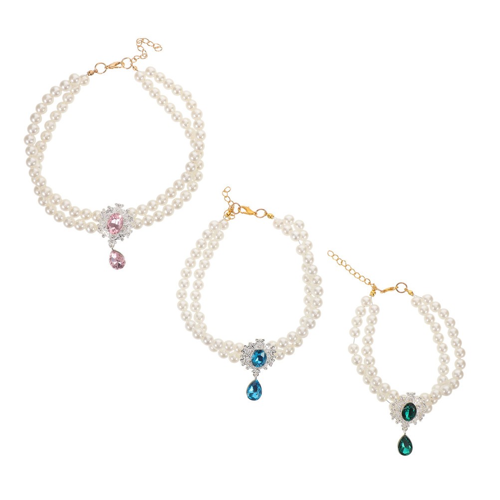 - Collier de chaîne de cou d'animal familier en cristal de 4 rangées, grand ornement suspendu.