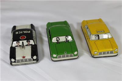 This lot includes Three (3) vintage tin metal litho friction cars, Made in Japan.