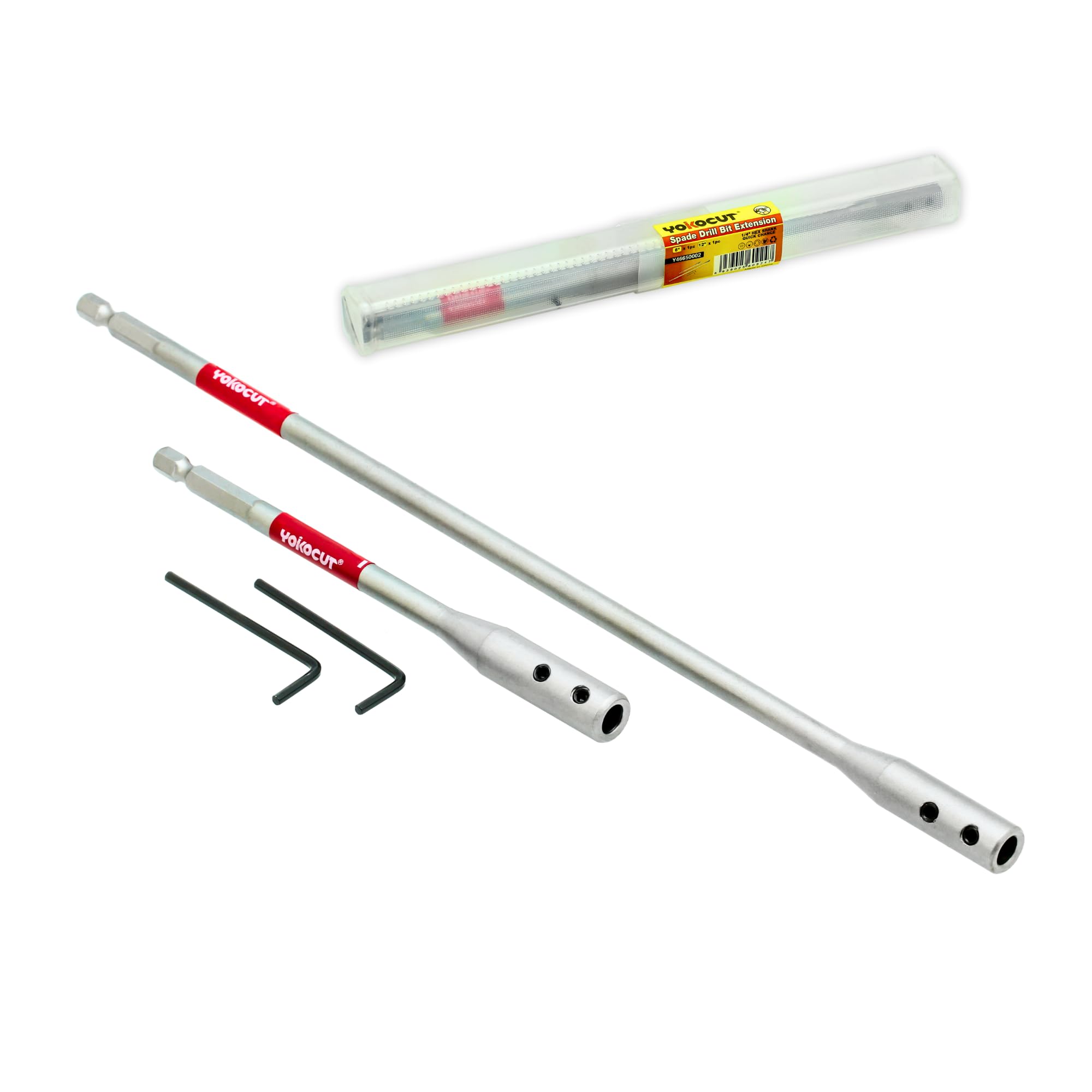 - 【Multi-Tool Configuration】The professional-grade spade drill bit extension set includes 2pcs 1/4" hex-shank extensions (6" and 12" lengths) and 2× heat-treated hex keys. Optimized for wood spade bit extension tasks, this dual-length system adapts to confined spaces with surgical precision.