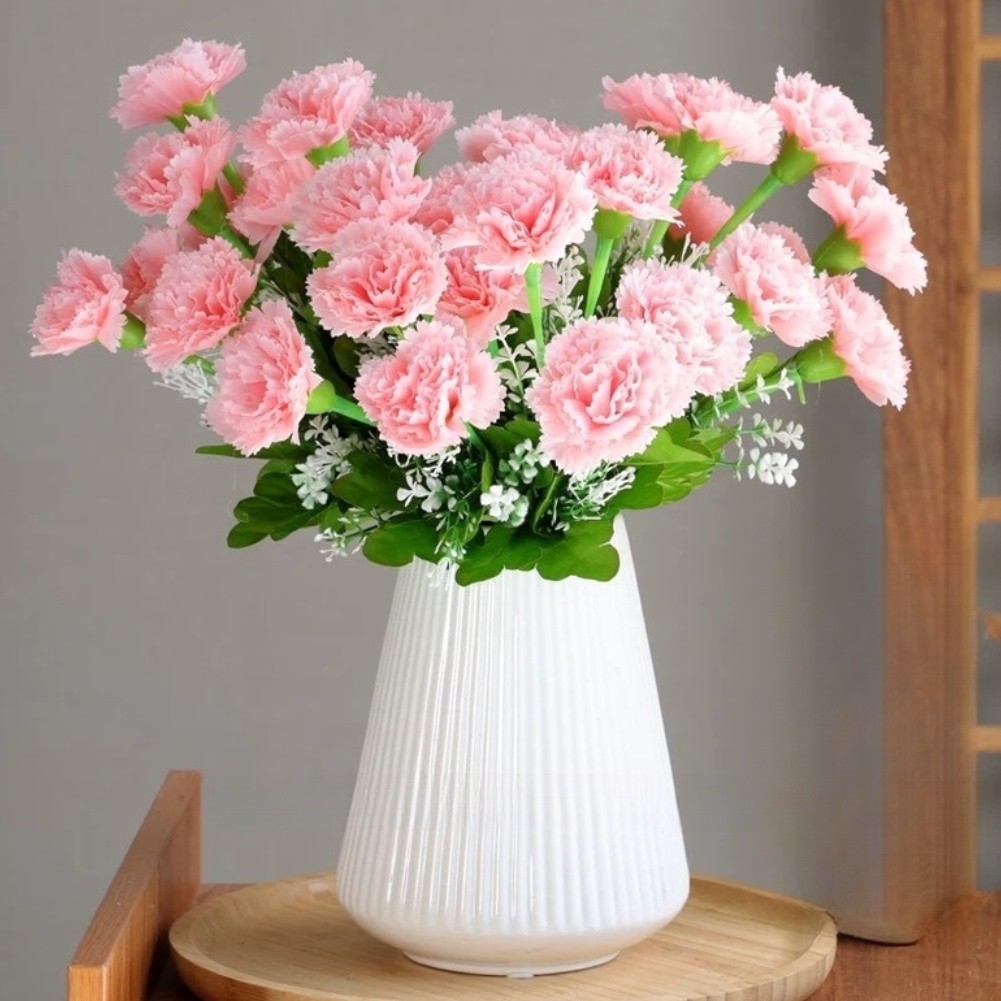 10 têtes bouquet de fleurs artificielles œillets soie pour centre de table