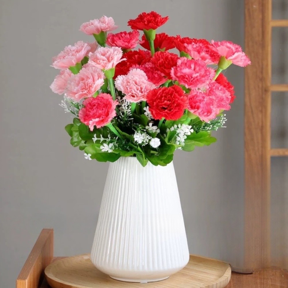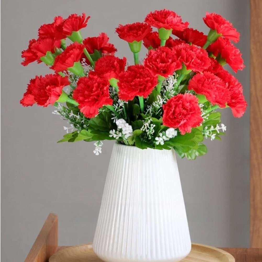 * Conception à 10 têtes : dispose de 10 têtes d'œillets réalistes pour un arrangement floral complet et vibrant.