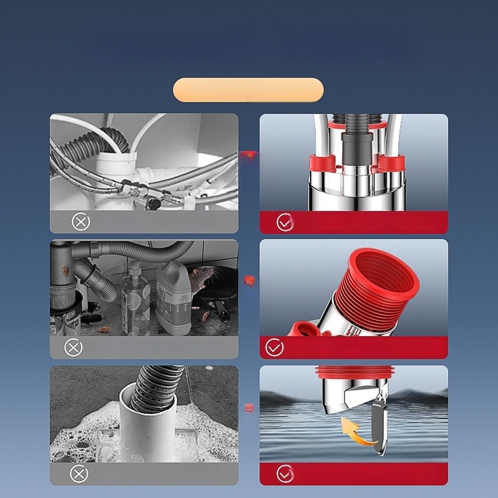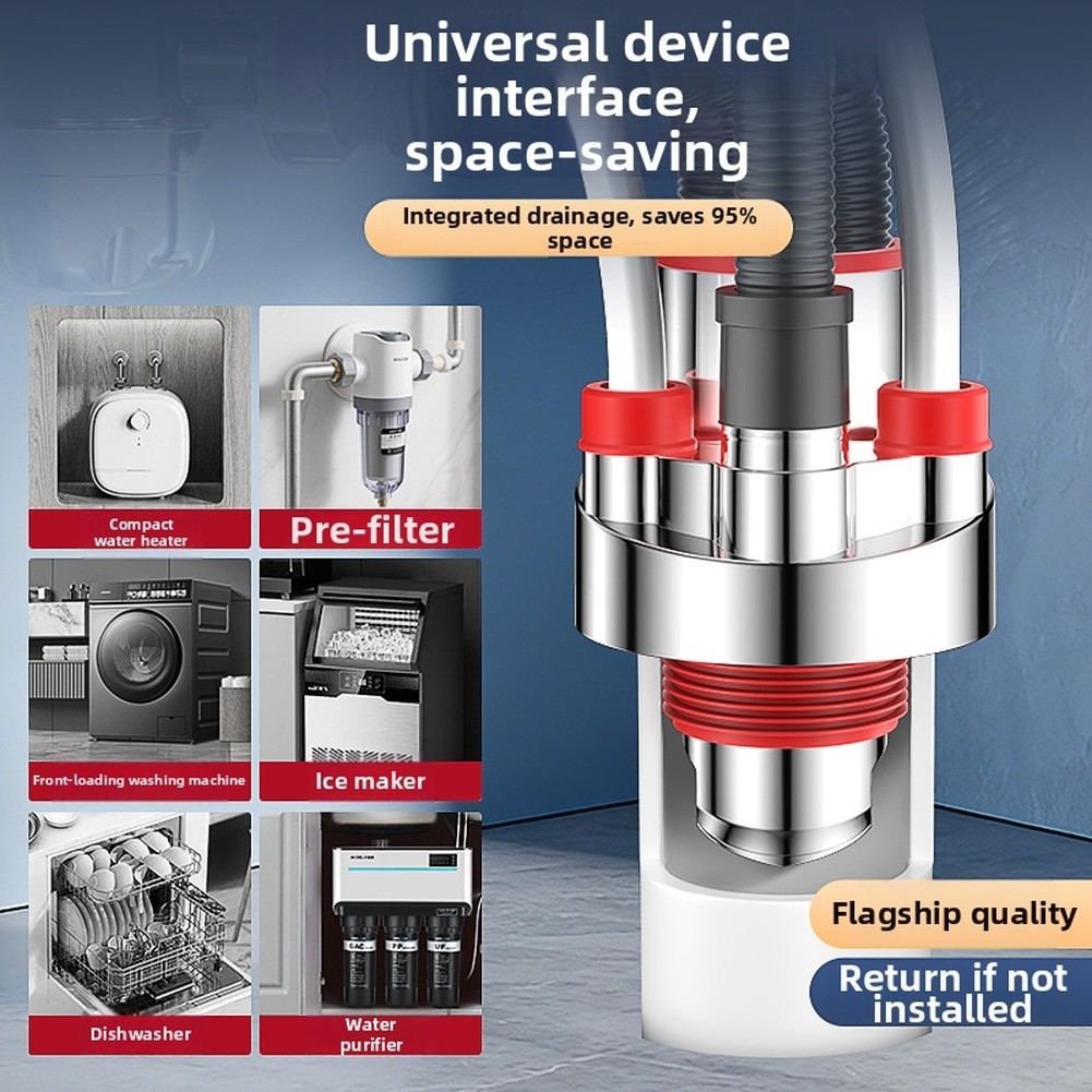 *Triple-Head Design: Connects multiple appliances like dishwashers and water purifiers for efficient kitchen drainage.