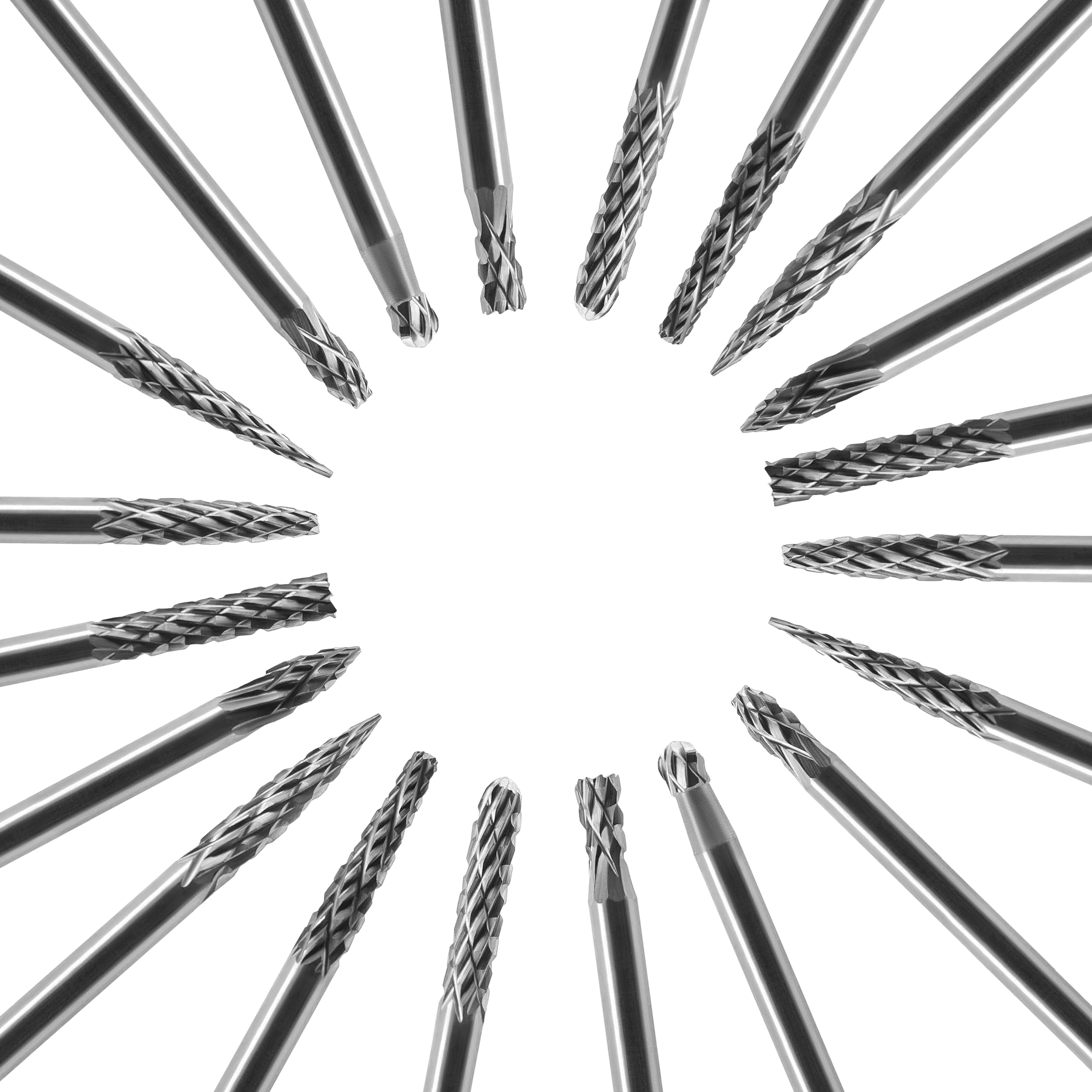 Brand: Material: Tungsten carbide Carbide burr set 1/8 (3mm) Shank Die grinder bits 1/8 (3mm) Shank Set include 20 pcs of carbide burrs