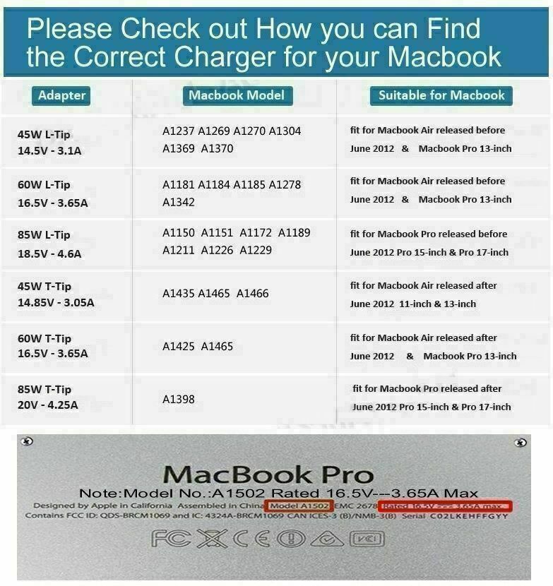 Note:Please choose the correct one for your macbook before buying, If you have any question you can contact us before you purchased then we can let you know which model of charger is for you.