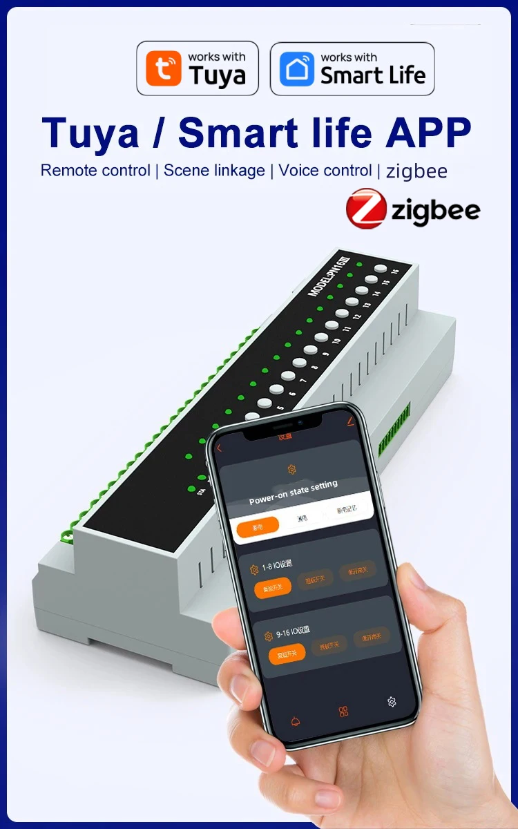 6&16 channels universal Zigbee smart switch , for your smart home system to remotely and automatically turn on/off home appliances and electronic devices by phone APP. It can connect and control appliances on APP at the same time, and you can independently turn on/off each of the gangs. It also supports timing turning on/off the appliances at a specified time, and share to others so that you can control your smart home together with your family. You can also voice control your home appliances by Amazon Alexa, and for Google Home/Nest, and enjoy intelligent life and make your home smarter.