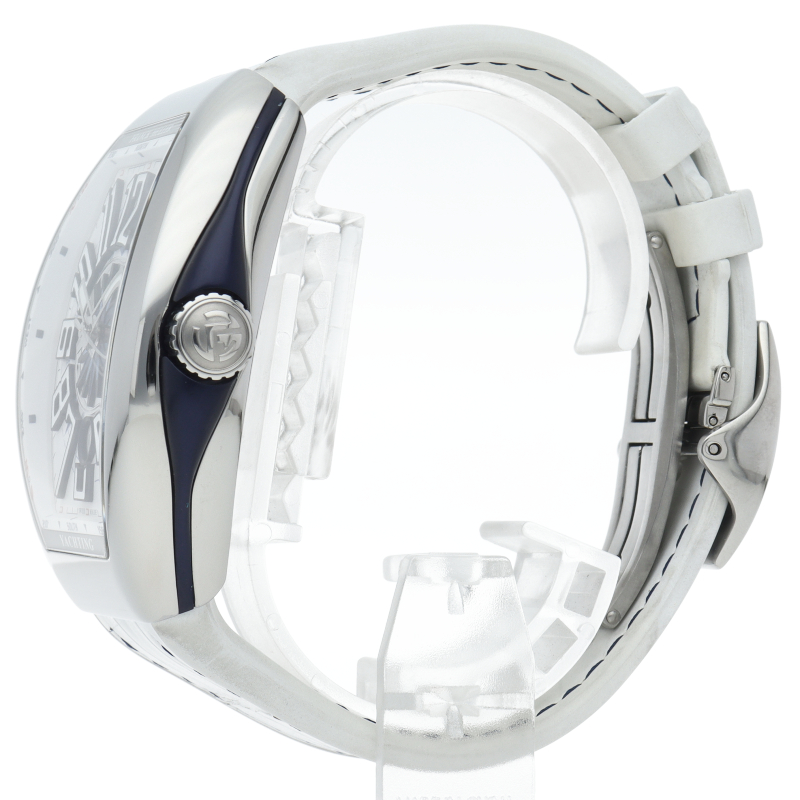 | "Vanguard" is based on the world view of sailing on a mega yacht. Yachting The design expresses the high-quality and tight curvaceousness of the boat, resonating with the advanced technology and the beauty of the details, and perfectly fuses the common values of luxury in yachts and watches. |