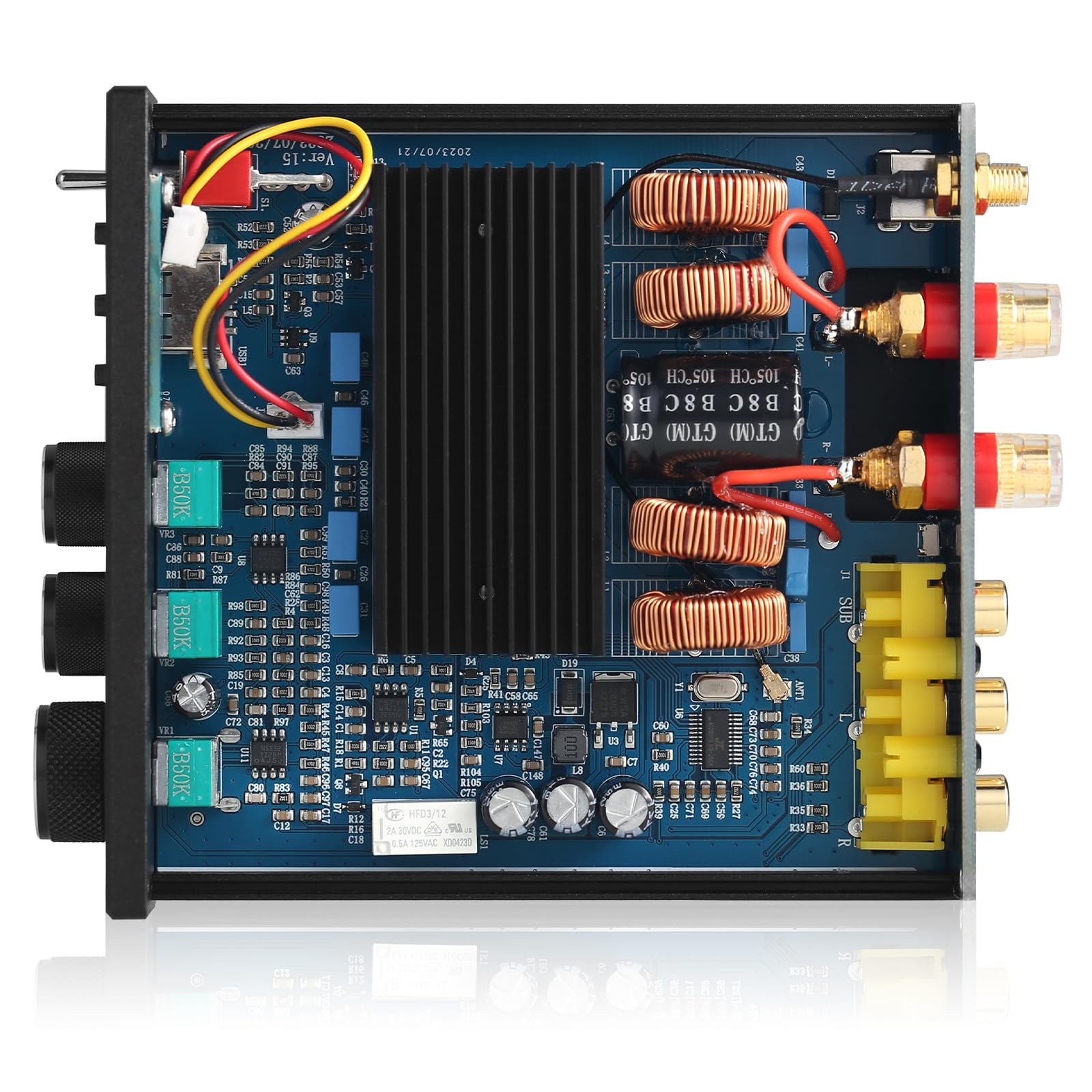 Note: Please note that this product is upgraded to 2023.10 and has improved more than the old version. ■ Use a classic TDA7498E tip, the MAX output reaches 160W + 160W, and has a high quality 32V/5A power supply to drive a passive speaker of 300W or more. Outdoor/Book shelf/computer/desktop/ceiling/flooring speaker well goes well. ■ M1 Pro supports stereo RCA and Bluetooth 5.0 input and can be connected to smartphones, computers, TV, MP3 players, TV, Echo dot, CD players, etc. It can also be used as a digital music player with a USB memory input that supports MP3, WAV, APE, and FLAC. ■ Low frequency output is specially designed to connect to the active speaker, and can greatly enhance the bass effect. The sound of treble and bass makes the sound more delicate, and the shocking hearing effect makes you feel like you're in a movie. ■ Reasonable circuit layout and simple wiring ensure a clear and clean sound of HIFI, and cannot hear noise even with high output. Add a Bluetooth reset button, clear all devices paired with one -click, and use it easily to pair new devices with M1 Pro.