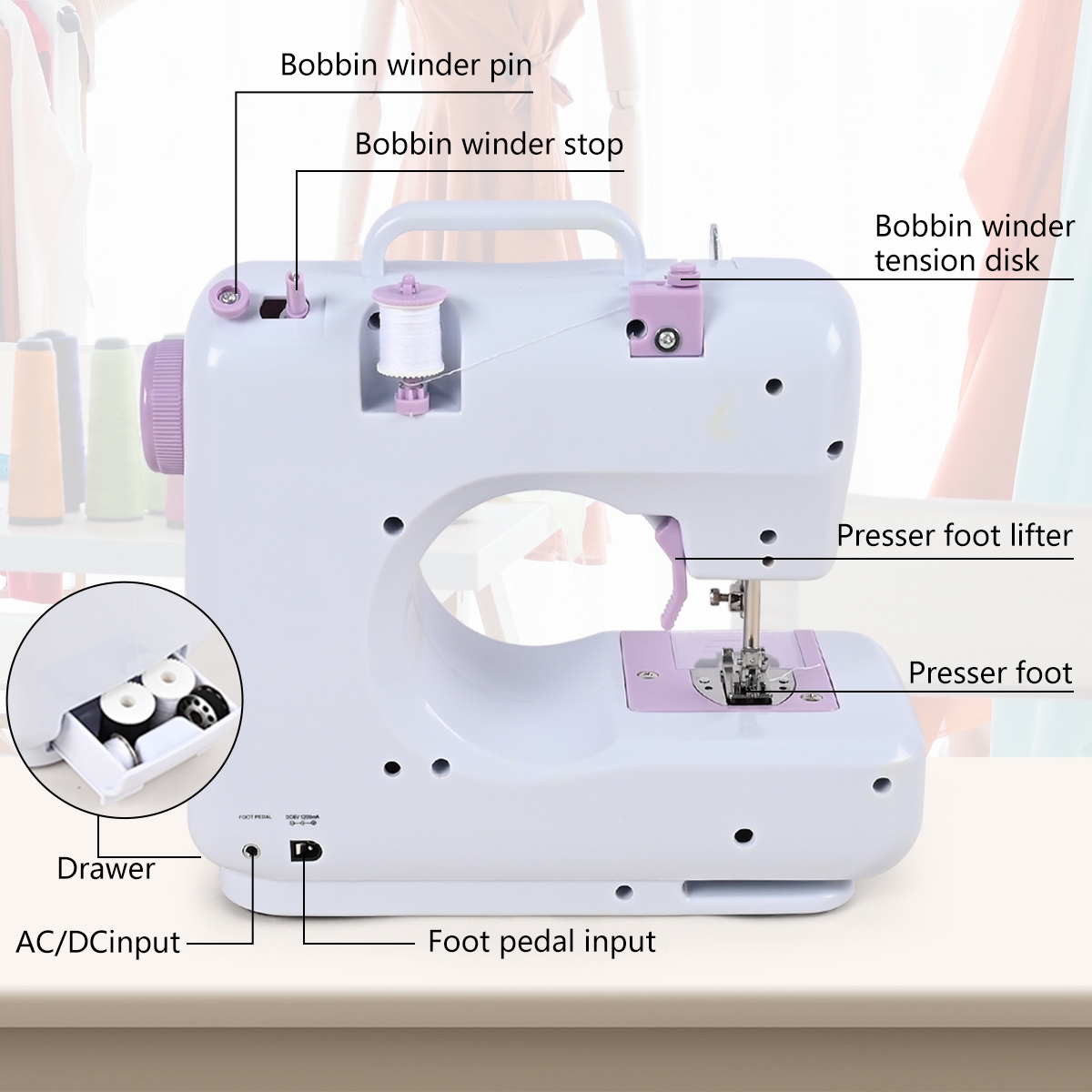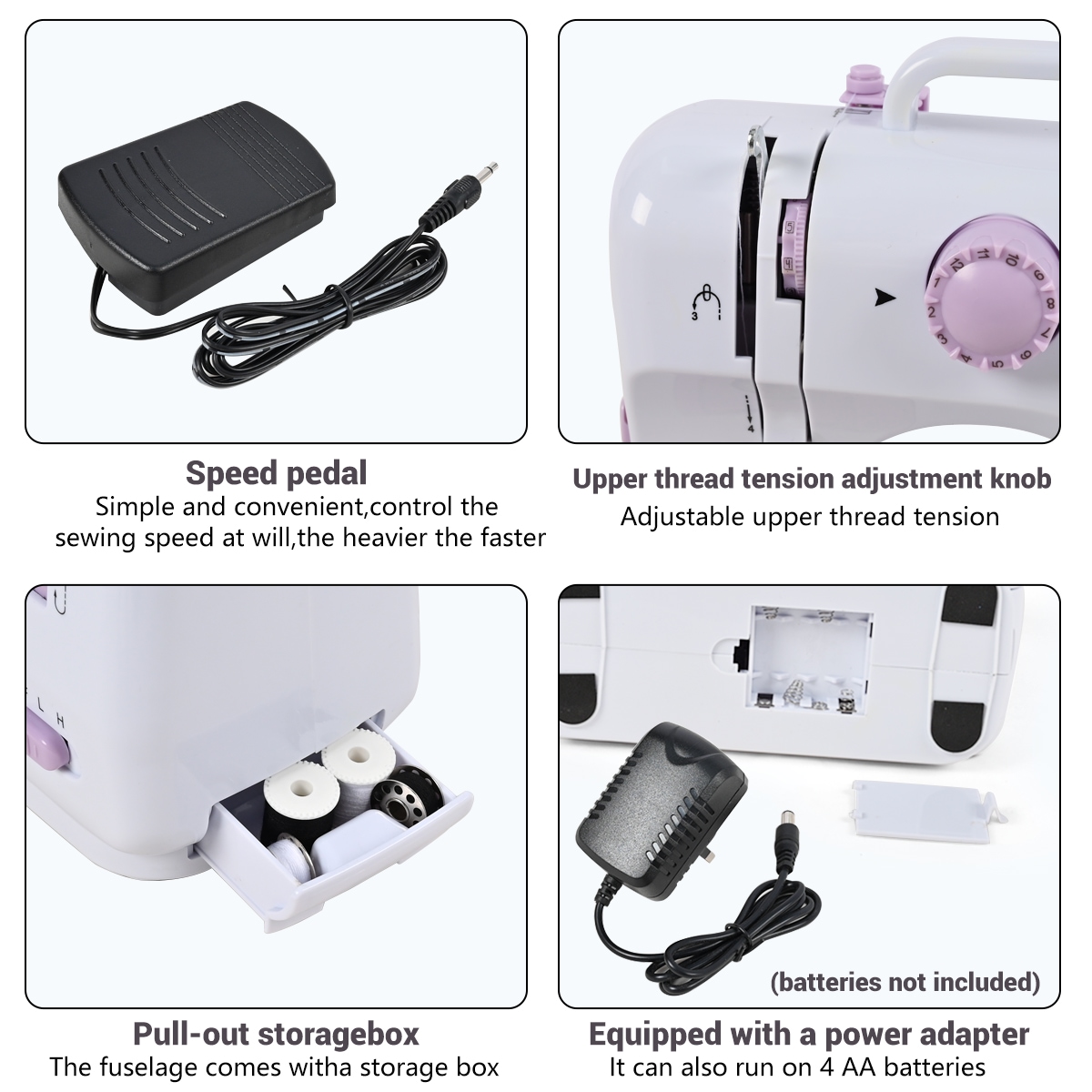 2.There are two speeds of Mini-Stitch Sewing Machine , a foot pedal and additional cotton reels.