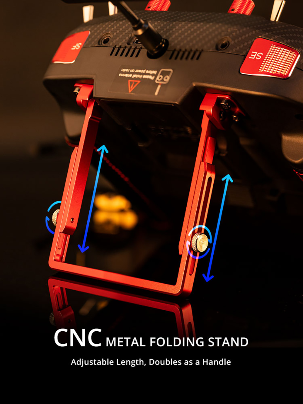 3. CNC metal folding stand,Adjustable Length, Doubles as a Handle,Length adjustable CNC color metal folding handle.