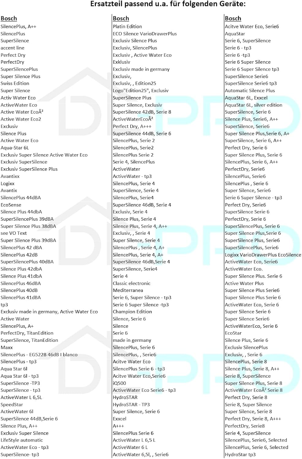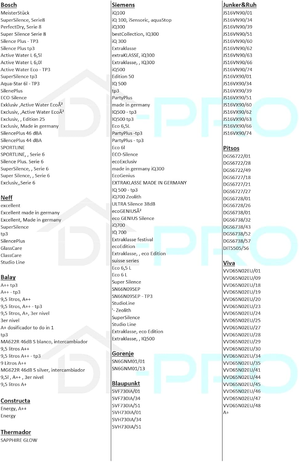 Bosch / Balay / Gaggenau / Gorenje / Küppersbusch / Neff / Pitsos / Profilo / Siemens / Thermador / Viva / Constructa