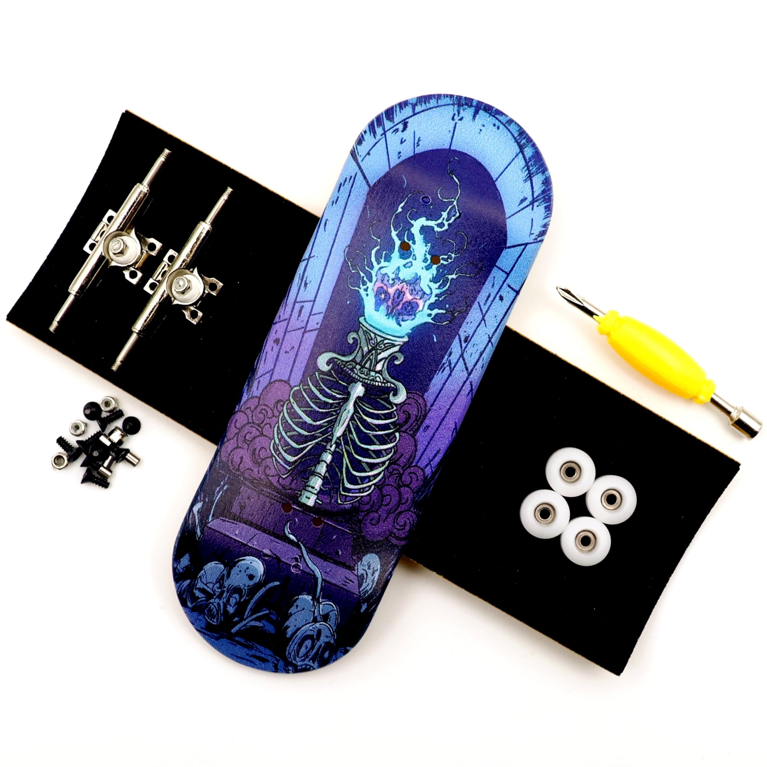 ★ Fingerboard Deck - Handmade from 5 layers of Canadian maple wood veneer,96*32mm,Deep Concave,Good graphic printing★ Fingerboard Trucks - 32mm standard trucks with upgraded 70A pro bushings and self-lock locknuts★ Fingerboard Wheels - Good wheel shape, made of POM material, durable and not easy to crack,the bearings inside are smooth,giving players a good riding experience.★ Fingerboard accessories - The locknut with nylon ring inside has excellent anti loosening effect,4 additional spacers can be installed on the truck axle to prevent the wheels from sliding left and right★ 1 set include - 1 deck 2 trucks 4 wheels 1 tape 9 screws 4 locknuts 1 screwdriver
