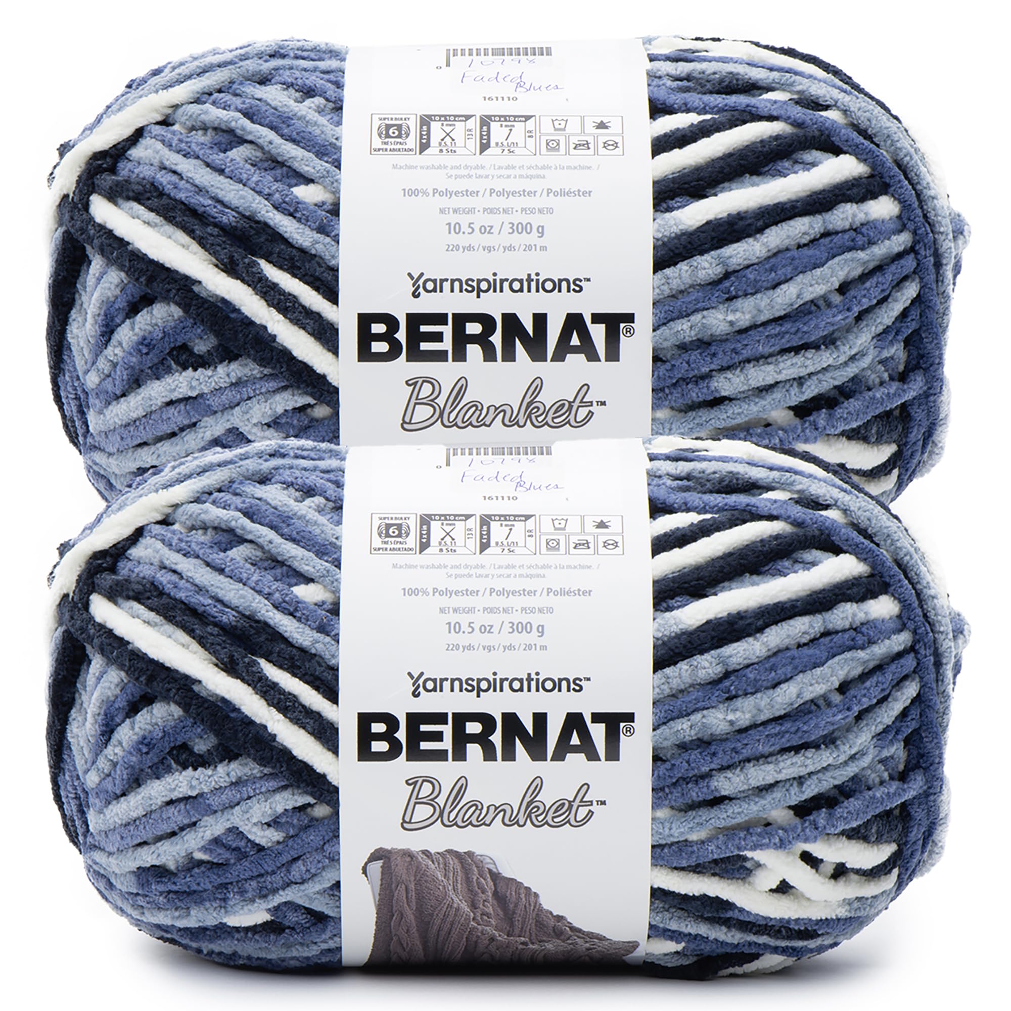 Blanket BB Faded Blues Yarn - 2 Pack of 300g/10.5 oz - 100% Polyester - #6 Super Bulky - 220 Yards - Knitting/Crochet