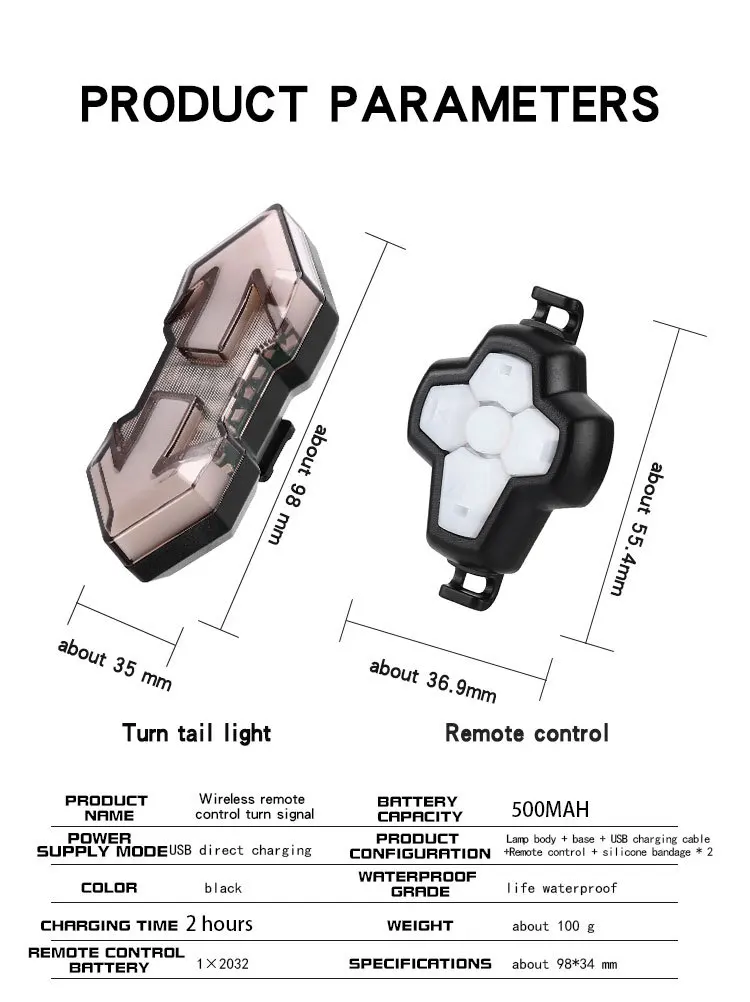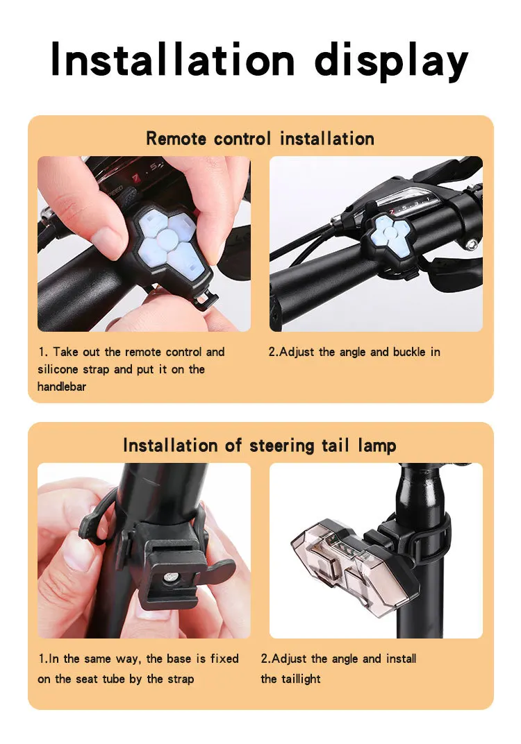 ◆ Easy to install, no other tools required. With flexible silicon bandages, easily install led turn signal and controller to appropriate positions, such as the handlebar and seatpost.