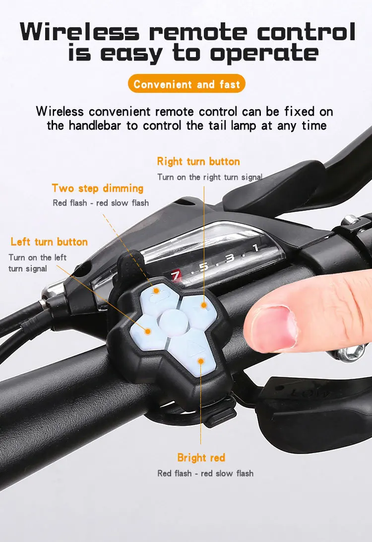 ◆ Wireless remote control, switch the back bike light mode at any time.