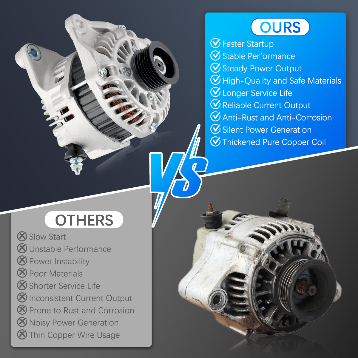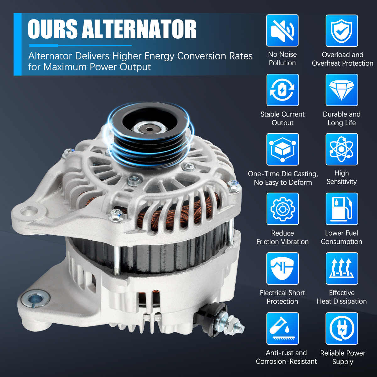 Rugged and stable car alternator, matched against OE originals for performance.
