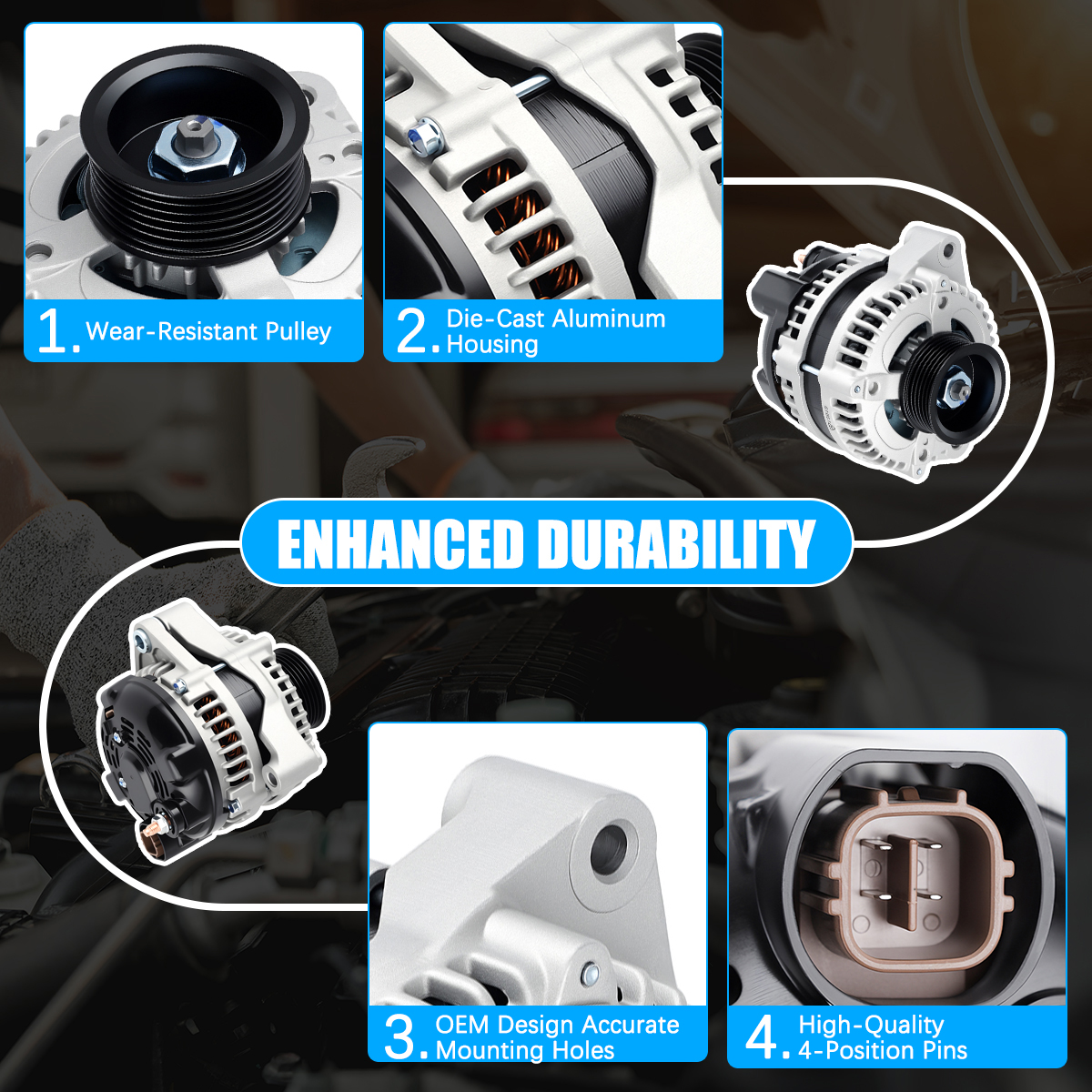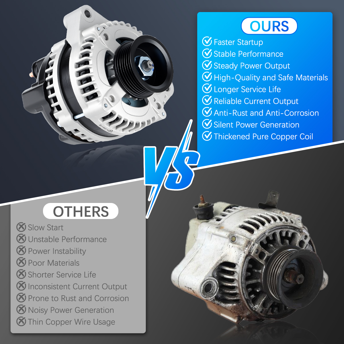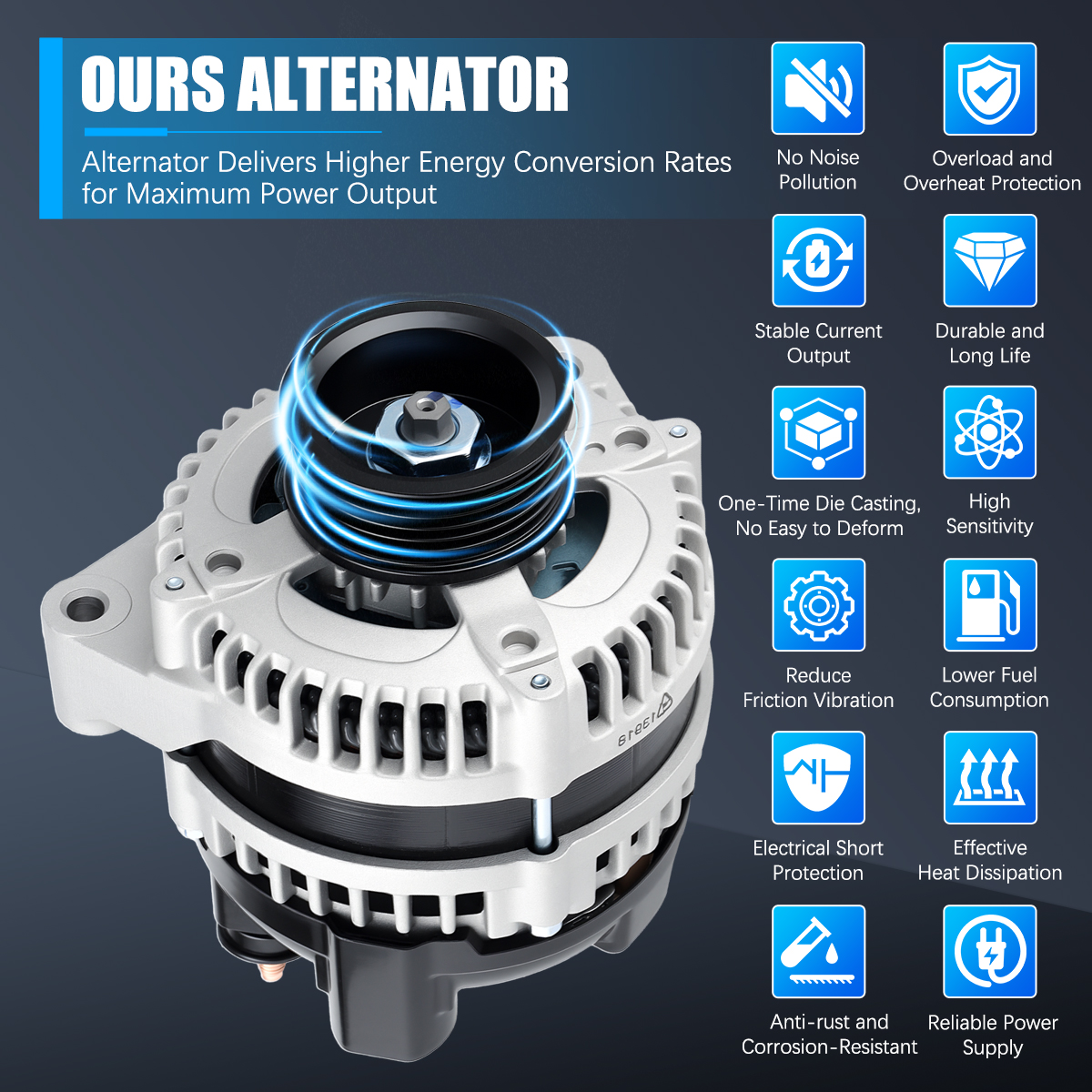 Rugged and stable car alternator, matched against OE originals for performance.