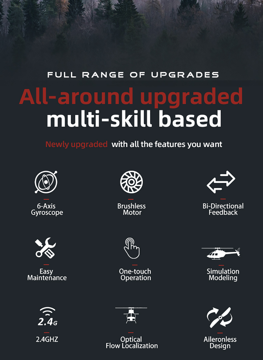 6. 6-axis gyro self-stabilization suitable forbeginners to fly Stable, fast, accurate flight attitude.