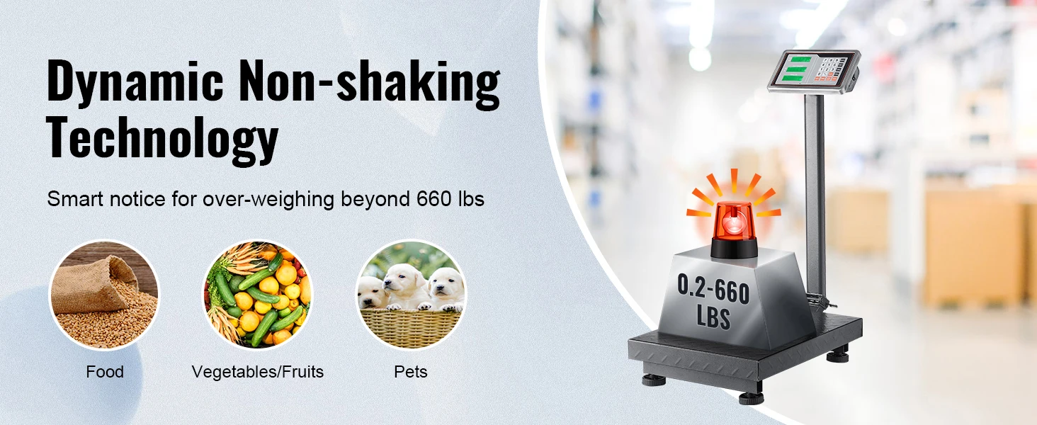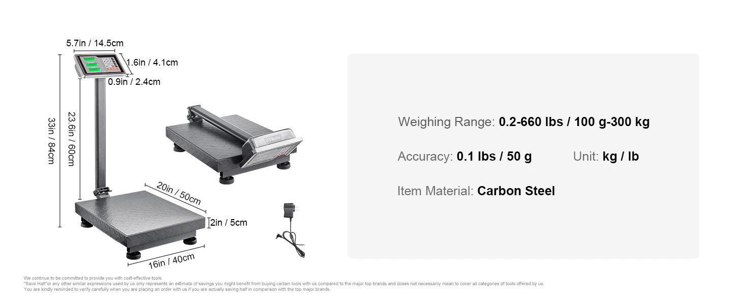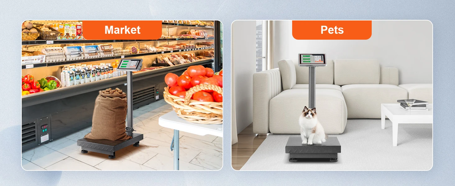 Ultimate Accuracy: Are you ready for complete accuracy! digital computing platform scale offers an extensive weighing range from 0.2 lbs (100 g) to 660 lbs (300 kg) with high accuracy of only 0.1 lbs (50 g). It's a versatile scale suitable for various applications, including industries, courier companies, markets, and even home use.