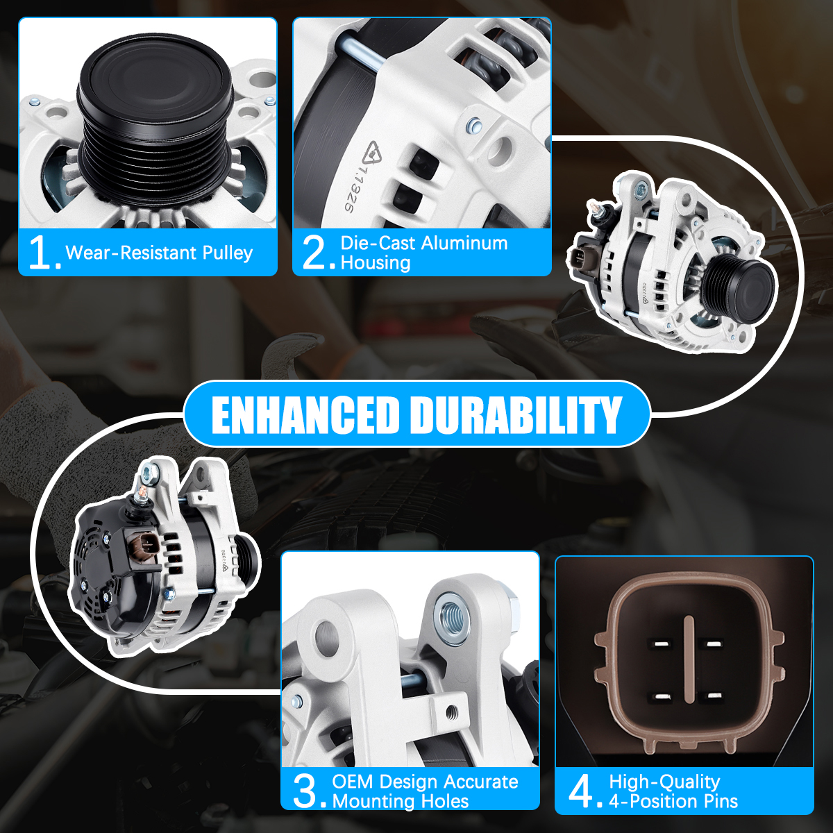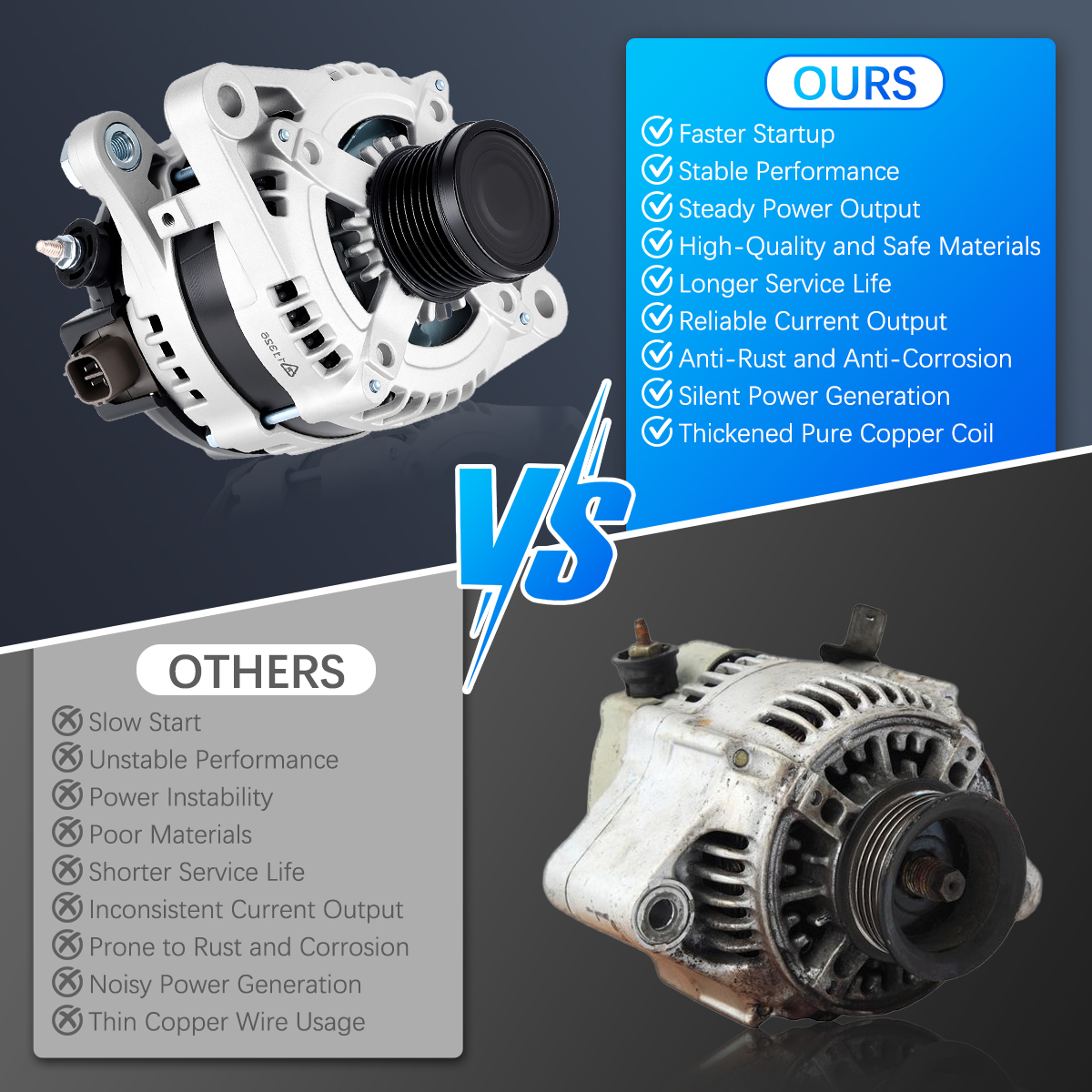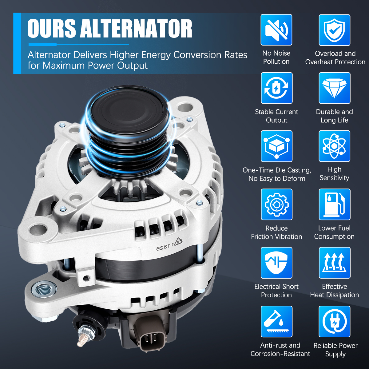 Rugged and stable car alternator, matched against OE originals for performance.