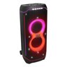 Lights color party! Transform your space into a captivatingfull sensory experience with the biggest multi-dimensional lightshow of any party speaker. It’s got a unique starry night effect cool light trails strobes and even lights that project onto any surface it’s sitting on. All of it syncs to your music and can be easily controlled via the streamlined user-friendly dials on the top panel or through the JBL One app.