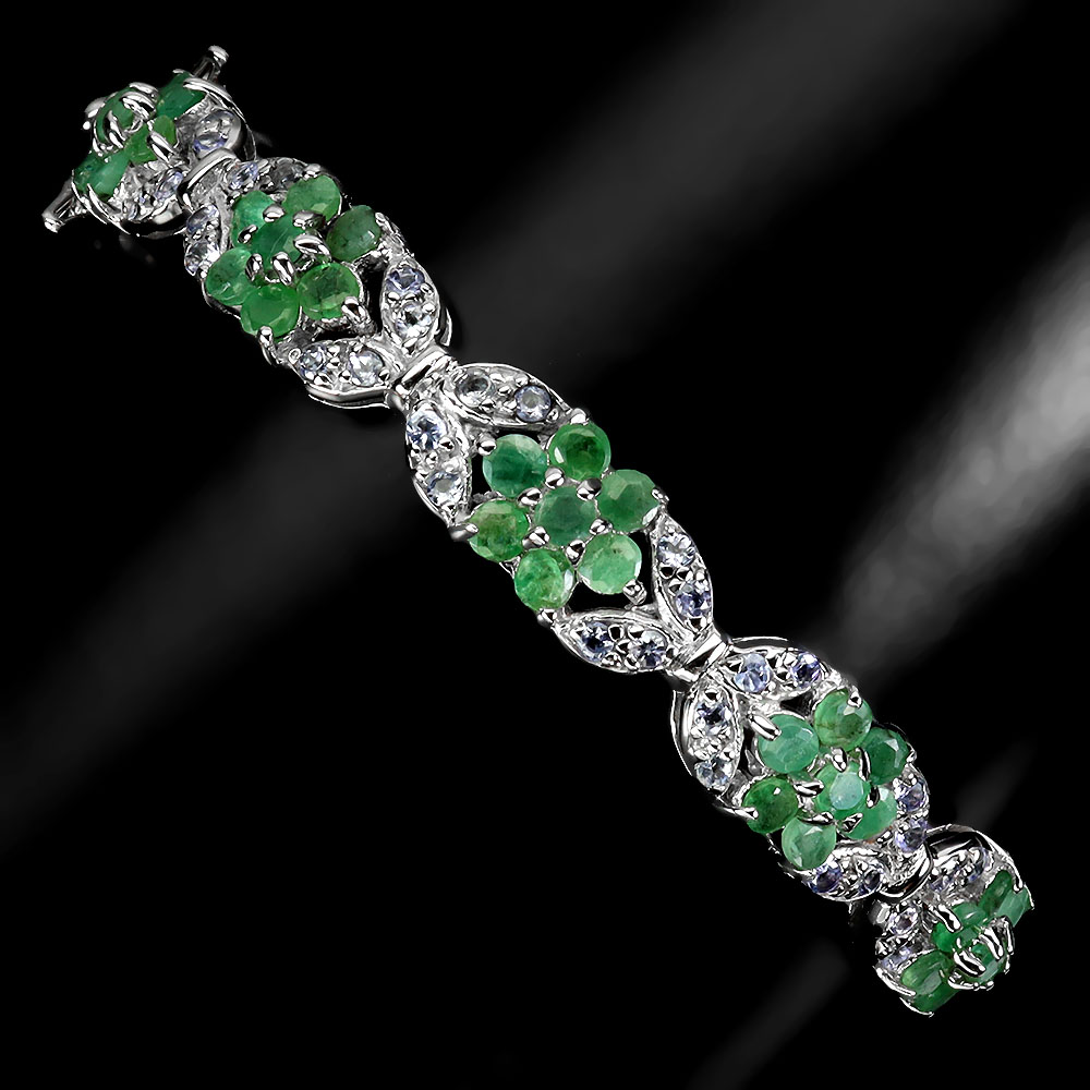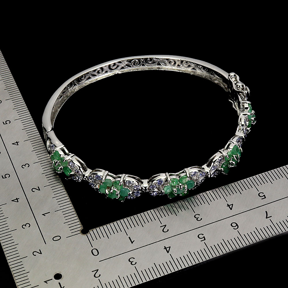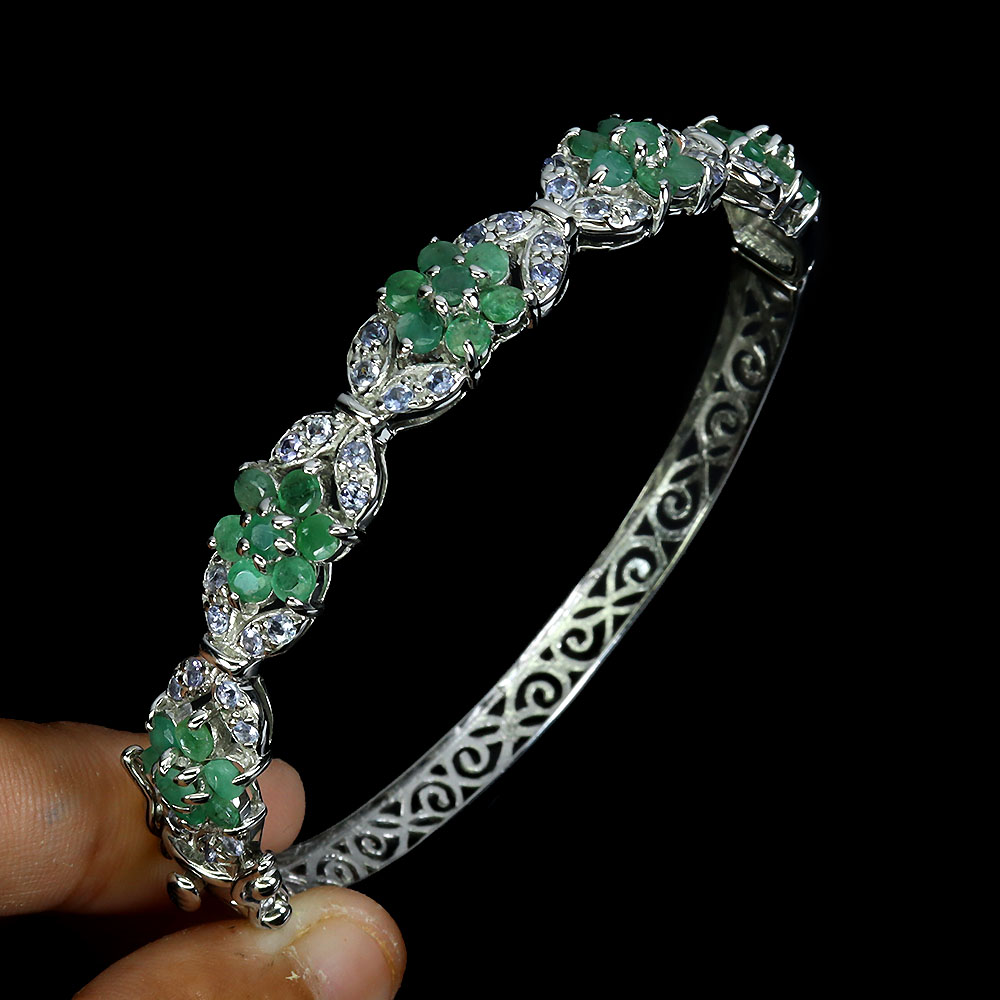 925 Sterling Silver Bangle Round Emerald Tanzanite Natural Gemstone Jewelry