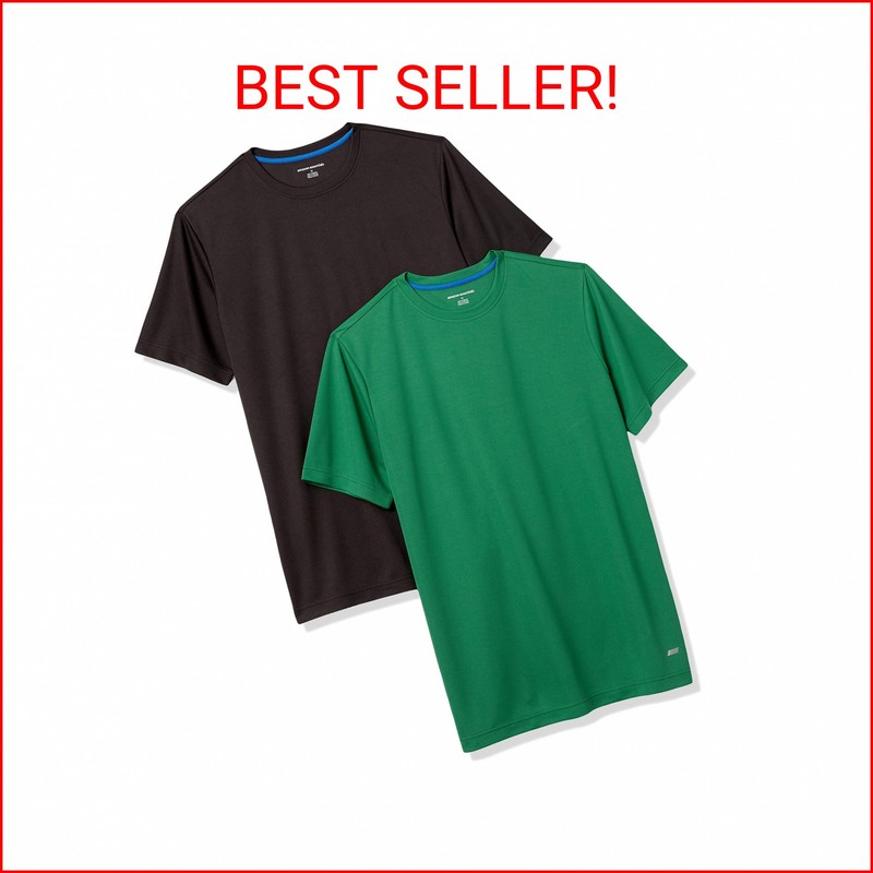 Amazon Essentials Men's Moisture Wicking Breathable Active Performance Tech T-Shirts, Pack of 2, Green/Black, XX-Large