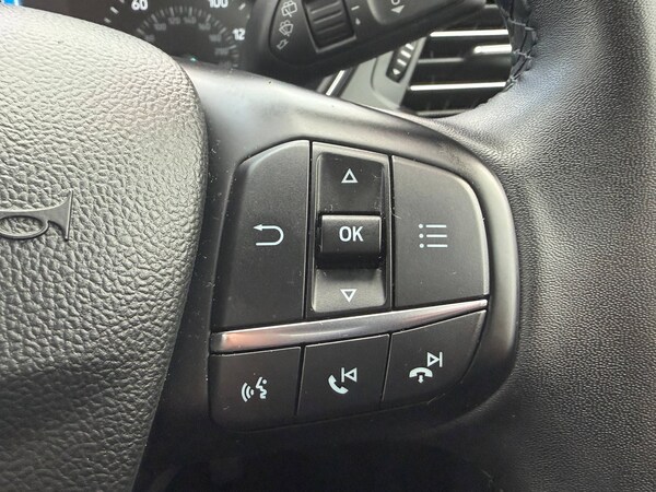 3x3 point rear seatbelts, ABS+Electronic Brake force Distribution, Auto hold function, Driver airbag, EDL traction control, Electronic parking brake, Electronic stability control, Front and rear seatbelt reminder, Front inertia reel height adjustable seatbelts with pre-tensioners, Front passenger airbag, Front side airbags, Passenger airbag deactivate switch, Post collision braking, Pre collision assist with autonomous emergency braking and pedestrian/cyclist detection, Remote/power child rear door locks, Side curtain airbags, Three rear inertia reel lap/diagonal seatbelts, Tyre pressure monitoring system, 4.2 inch Colour TFT Ice blue illumination analogue cluster with trip computer, Bluetooth system, Cruise control including adjustable speed limiter, Digital clock, Easy fuel capless refuelling system, Eco mode, Ford SYNC 4 Navigation with 13.2 inch touchscreen, DAB radio, Emergency Assistance, Apple Carplay and Android Auto, 6 speakers and FordPass Connect, Front and rear parking sensors, Lane keeping system - lane keeping alert and lane keeping aid, PAS, Rev counter, Selectable drive mode, Service interval indicator, Auto headlamps (on/off), Body coloured door handles, Electrically operated front and rear windows with one touch opening and closing, Electrically operated heated power fold door mirrors with puddle lamp with side indicators, Front variable intermittent wipers with electric wash, Full fixed LED headlamps, Grille with chrome surround and horizontal bars, Heated rear window, LED daytime running lamp, LED rear lamps, LED third brake light, Quickclear heated windscreen, Rain sensor, Rear side wing doors, Solid paint, Tailgate wash/wipe, 3 rear headrests, 3 seat bench in 2nd row, Cloth upholstery, Dual zone electronic air temperature control, Height adjustable front headrests, Isofix child seat preparation, Manual 4-way driver seat adjust, with manual lumbar adjust, Manual 4-way passenger seat adjusts, Reach + rake adjustable steering column, Single front passenger seat, Keyless entry and keyless start, MyKey system, Remote central locking and engine immobiliser, Thatcham alarm with power door dead locks, 2 USB ports, 16 inch 6x2 spoke dark sparkle high gloss finish alloy wheels with mini spare wheel