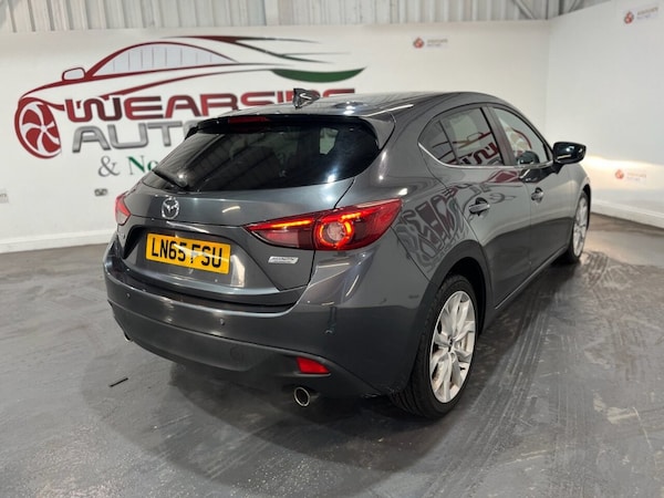 Mazda Mazda3 2.0 SKYACTIV-G Sport Nav, 5dr Hatchback, Petrol, Manual, Euro 6 (s/s), 121 PS. two owner car supplied with two keys and a Full Main dealer service history recorded at 16, 21, 27, 34, 37, 39, 48 and 52 thousand miles. This well-presented Mazda3 Sport Nav offers an excellent blend of style, efficiency and equipment. It features alloy wheels, privacy glass, front and rear parking sensors, keyless start, power-folding door mirrors, automatic headlights and a heads-up display. Inside, the car provides cruise control, heated seats, satellite navigation, DAB radio, Bluetooth connectivity and dual-zone climate control. A reliable and engaging hatchback with a strong specification..alloy wheels + privacy glass , F/R parking sensors + keyless start , folding mirrors + auto lights + heads up, cruise + heated seats + NAV , DAB + bluetooth + climate , 12V Power Socket - Front, 18in Alloy Wheels, ABS - Anti Lock Braking System, AUX Socket, Adjustable Speed Limiter, Aha App and Stitcher App Integration, Air Conditioning - Dual Zone Climate Control, Airbags - Curtain Front, Airbags - Curtain Rear, Airbags - Driver, Airbags - Front Passenger, Airbags - Front Passenger Deactivation System, Armrest - Front Centre with Storage Box, Armrest - Rear, Audio Systems - AM-FM Radio-CD Player, Auto Dimming Rear View Mirror, Body Coloured Door Mirrors, Cruise Control, Cupholder - Front x2, Cupholder - Rear x2, DSC - Dynamic Stability Control, Dashboard Decoration Panel - Silver, Deadlocking, Digital Speedometer, Door Handles - Body Coloured, Door Mirrors - Electrically Adjustable-Heated-Folding, Door Pockets - Front, Dusk Sensing Automatic Headlights, Electric Windows - Front and Rear with One Touch Auto Up and Down on Drivers Side, Emergency Stop Signalling System - ESS, Engine Start-Stop Button, Front Fog Lights with Chrome Surround, Front Side Airbags, Gear Knob - Leather, Glovebox Illumination, Grab Handles - Front Passenger and Two Rear with Coat Hooks, Handbrake - Leather Wrapped, Head Restraints - Rear, Head Up Display, Headlights - Adaptive Front Lighting System, Headlights - Automatic Levelling, Headlights - Bi-Xenon, Headlights - Cleaning, Hill Hold Assist, ISOFIX Child Seat Anchorage for Outer Rear Seats, Immobiliser, Integrated Bluetooth System, Interior Light Dome with Integral Spot Light, LED Daytime Running Lights, Luggage Compartment - Light, Multimedia Commander, Overhead Console with Sunglassess Holder, Parking Sensors - Front, Pollen Filter, Power Assisted Steering - Electronic, Premium BOSE Centrepoint Surround System - Speakers x9, Privacy Glass - Rear and Rear Side Windows, Rain-Sensing Front Wipers, Rear Lights - LED, Rear Parking Sensors, Remote Central Locking, SCR - Secondary Collision Reduction, Satellite Navigation - European Mapping with 3-years Map Updates, Satellite Navigation System, Seatback Pocket - Passenger Side, Seatbelt Reminder for Front and Rear, Seats - 60-40 Split Folding Rear, Seats - Drivers Dial Reclining and Height Adjustment, Seats - Drivers Manual Lumbar Adjustment, Seats - Front Heated, Shark Fin Antenna, Smart City Brake Support, Smart Keyless Entry, Spoiler - Rear Roof, Steering Wheel - Leather, Steerin