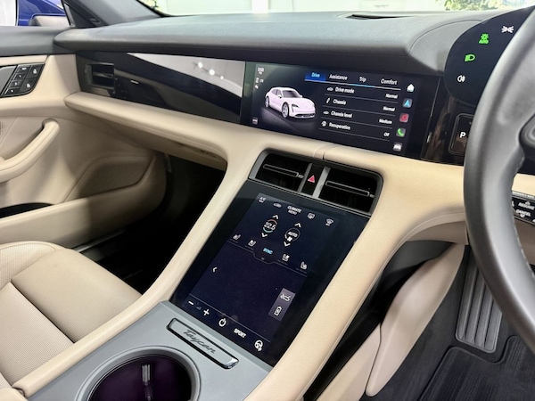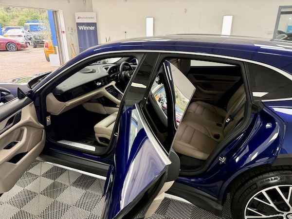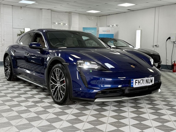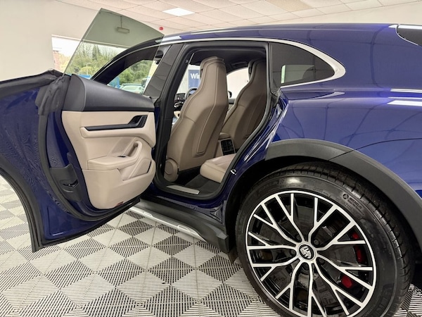 Lovely Porsche Cross Turismo Finished In Gentian Blue With Contrasting Chark Beige. Vehicle is 1 Owner With Porsche History And 2 keys, Sold With New Service ( Porsche ) New 12 Months MOT And 6 Months Warranty. Finance Arranged .Partial Leather with Leather Interior - Two Tone - Black-Chalk Beige, Seat Ventilation - Front, Gentian Blue, 20in Alloy Wheels - Taycan Turbo S Design, Privacy Glass, 11kW AC On-Board Charger, 12v Electrical Socket in Rear Luggage Compartment, 12v Electrical Socket in the Centre Console Storage Compartment, 16.8in Curved Display, 19in Alloy Wheels - Taycan S Aero, 2 USB-C Charge Ports in the Rear, 2 USB-C Connectivity and Charge Ports in the Centre Console Storage Compartment, 3-Point Automatic Seat Belts with Pre-Tensioners - Front and Outer Rear Seats and Front Force Limiter, 4-Point LED Daytime Running Lights, 50kW DC On-Board Charger for use of Public Charging Stations with a voltage of 400V, ABS - Anti-lock Brake System, Accent Package in Black, Active Bonnet System, Active Carbon Fine Dust Filter, Adaptive Air Suspension including Porsche Active Suspension Management - PASM, Advanced 2-Zone Climate Control, Aluminium Double-Wishbone Front Axle, Aluminium Multi-Link Rear Axle, Auto-Deploying Door Handles, Automatic Headlight Activation including Welcome Home Lighting, Automatic Hold Function, Automatic Tailgate, B-Pillar Clothes Hook on Driver and Passengers Side, Brake Calipers - Red, Brake Pad Wear Indicator, Bumpers Comprising High-Strength Cross Members and Two Deformation Elements Each with One Threaded Fixture Point for Towing Eye Contained in On-Board Tool Kit, Cable between Charger and Vehicle - 7.5m, Centre Console with Direct Touch Control, Charge Port on Driver and Front Passenger Side, Collision and Brake Assist, Comfort Seats - Front with 8-way Electrical Adjustment of Seat Height - Seat and Backrest Angle and Fore-aft Position, Cross Turismo Style Lower Valance with Inlays in Brilliant Silver Finish, Cross Turismo Style Rear Diffuser with Inlays in Brilliant Silver Finish, Cross Turismo Style Side Skirts with Inlays in Brilliant Silver Finish, Cruise Control including Adaptive Speed Limiter, Curtain Airbags Along Entire Roof Frame and Side Windows from the A-Pillar to the C-Pillar, DC Charging at Public Charging Stations with Voltage of 800V, Digital Radio, Door Sill Guards in Brushed Aluminium, Driver Personalisation, Electric Parking Brake, Electric Windows - Front and Rear, Electrically Adjustable and Heated Exterior Mirrors - Aspherical on Drivers Side, Engine Bonnet - Rear Tailgate - Doors - Side Panels - Roof and Front Wings in Aluminium, Engine Immobiliser with Remote Central Locking and Alarm System with Radar-Based Interior Sur