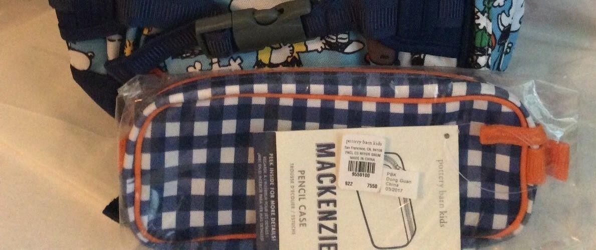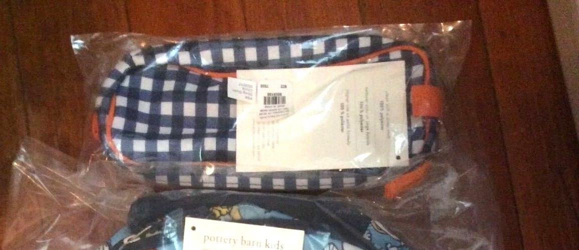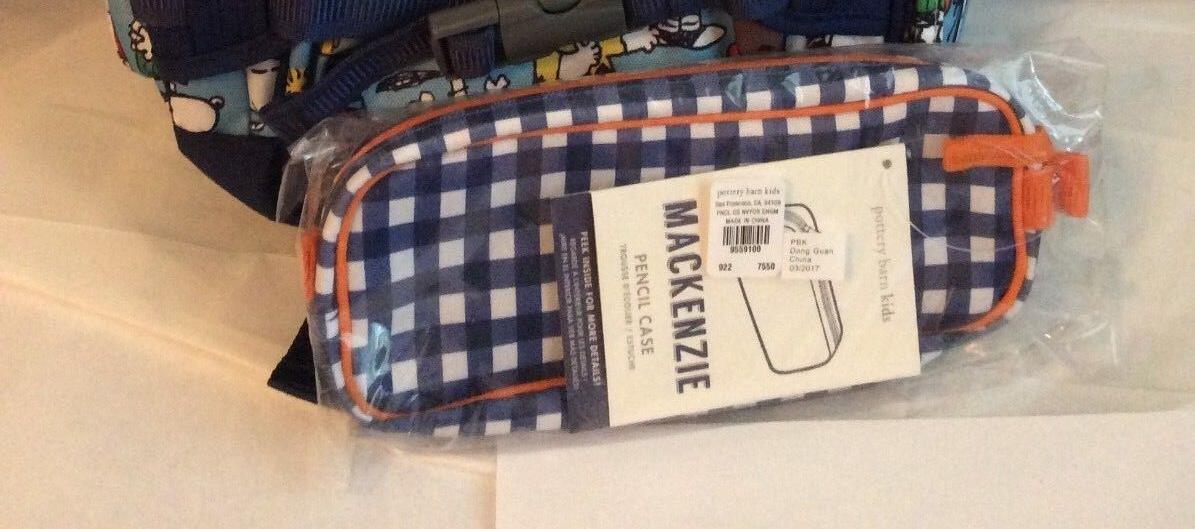 School Pottery barn PENCIL zip CASE BAG pouch Disney navy plaid holiday gift [