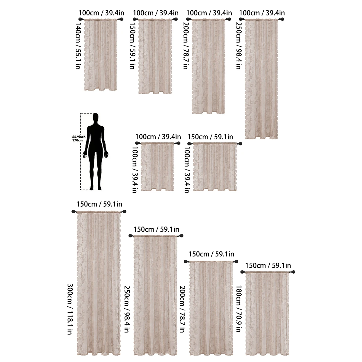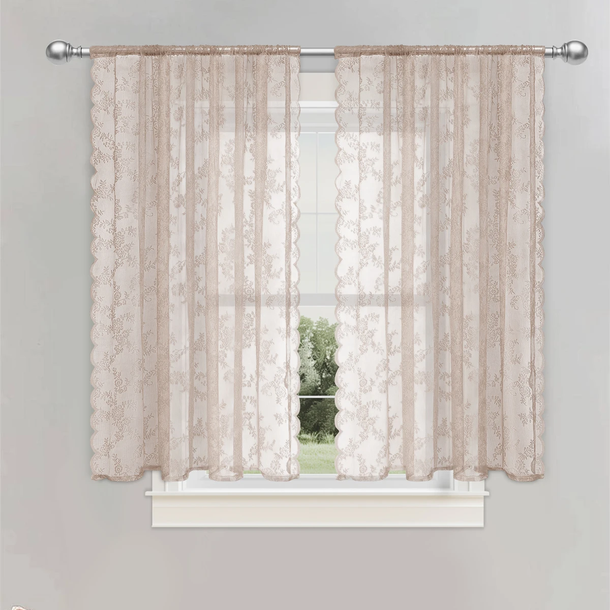 - **1pc Romantic Lace Sheer Curtain** – A single-piece, delicate lace curtain with a sheer (semi-transparent) design, offering a soft and elegant look.