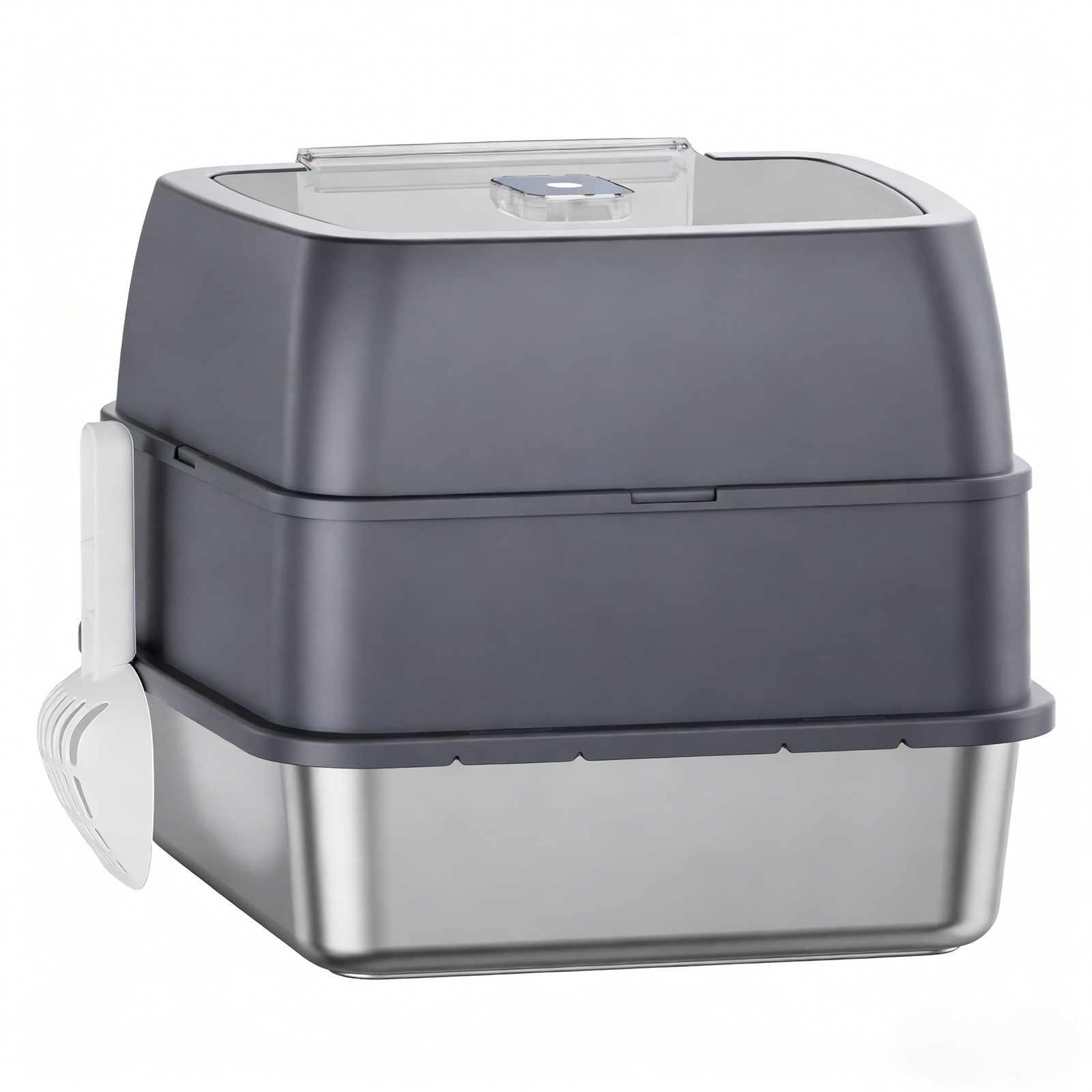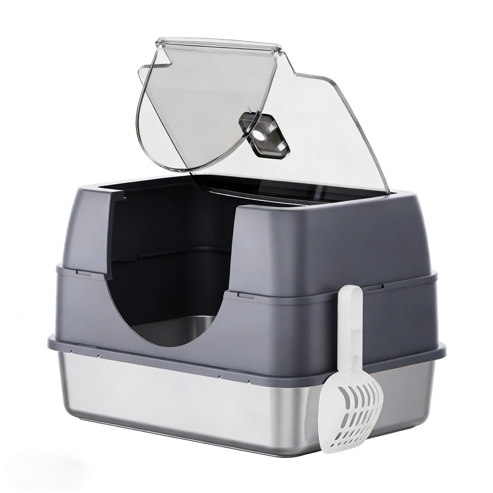 Stainless Steel Litter Box with Lid, Covered Kitten Litter Box Gray White Black