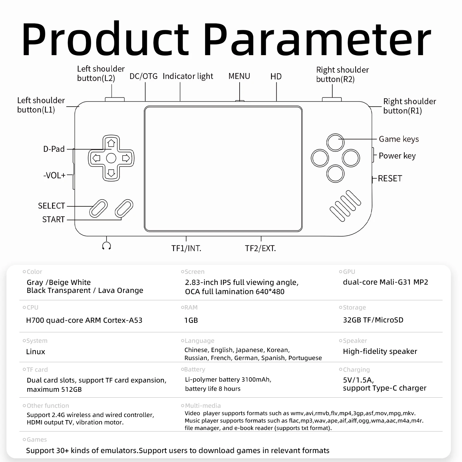 Other function | Support 2.4G wireless and wired controller,HDMI output TV, vibration motor. |