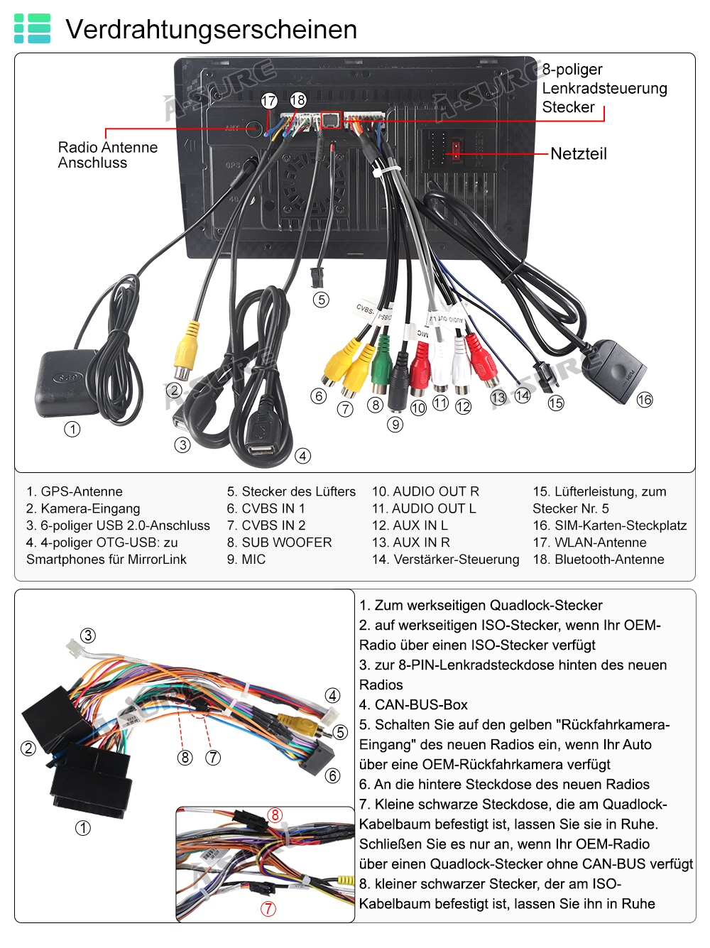Unterstutzt die originale Lenkradsteuerung, um mit dem Autoradio zu funktionieren.