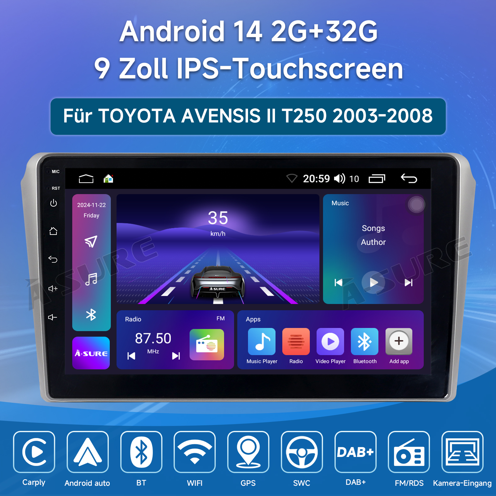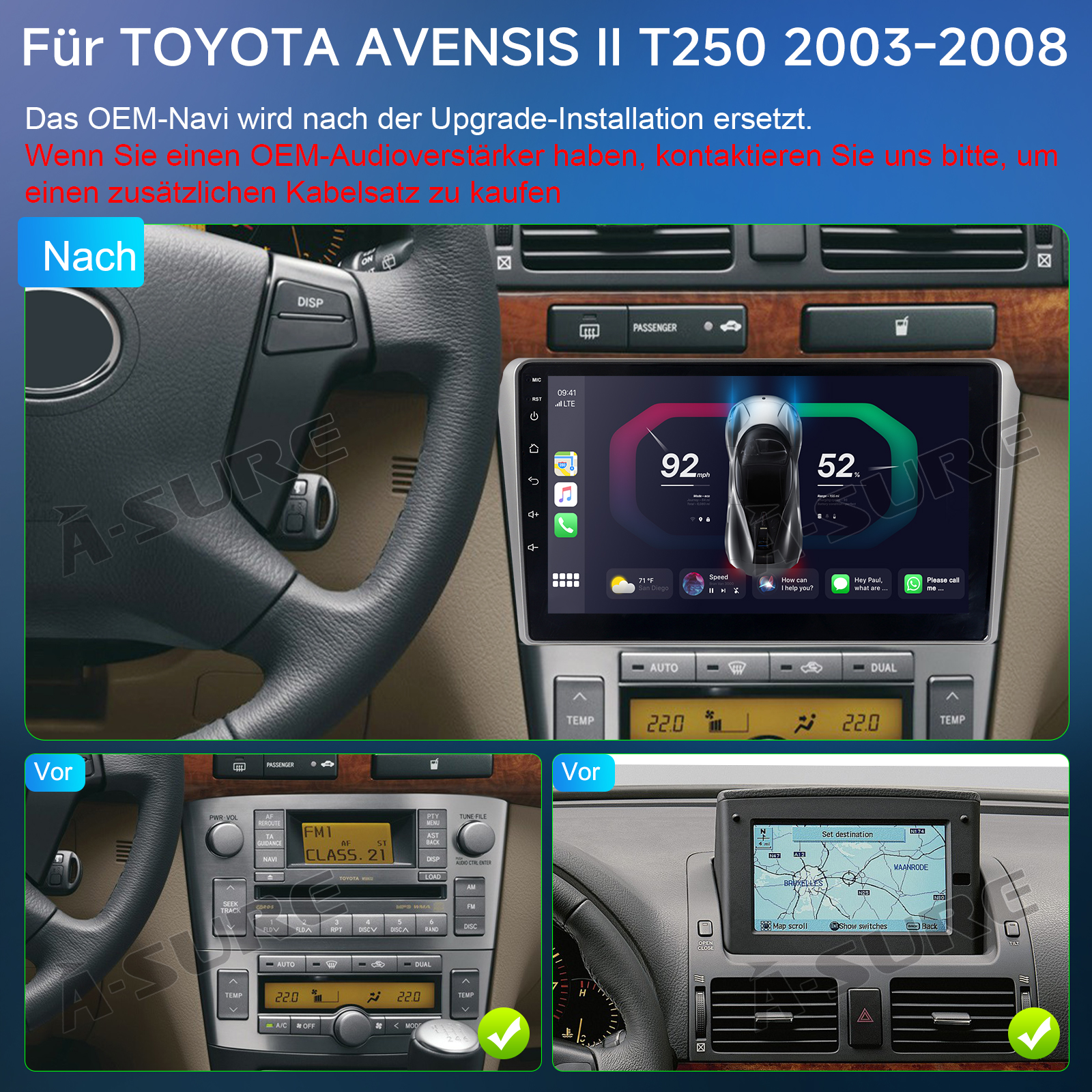 DAB+: Digital Audio Broadcasting ermöglicht Ihnen überregionale Musik mit Ihren lokalen bekannten und auch neuen Kanälen. CD Klangqualität und Geräuschfreiheit bei hervorragender Übertragung machen DAB-Radio zu einem besonderen Erlebnis im Fahrzeug.(Bitte kontaktieren Sie uns, um DAB+ Box zu kaufen.)