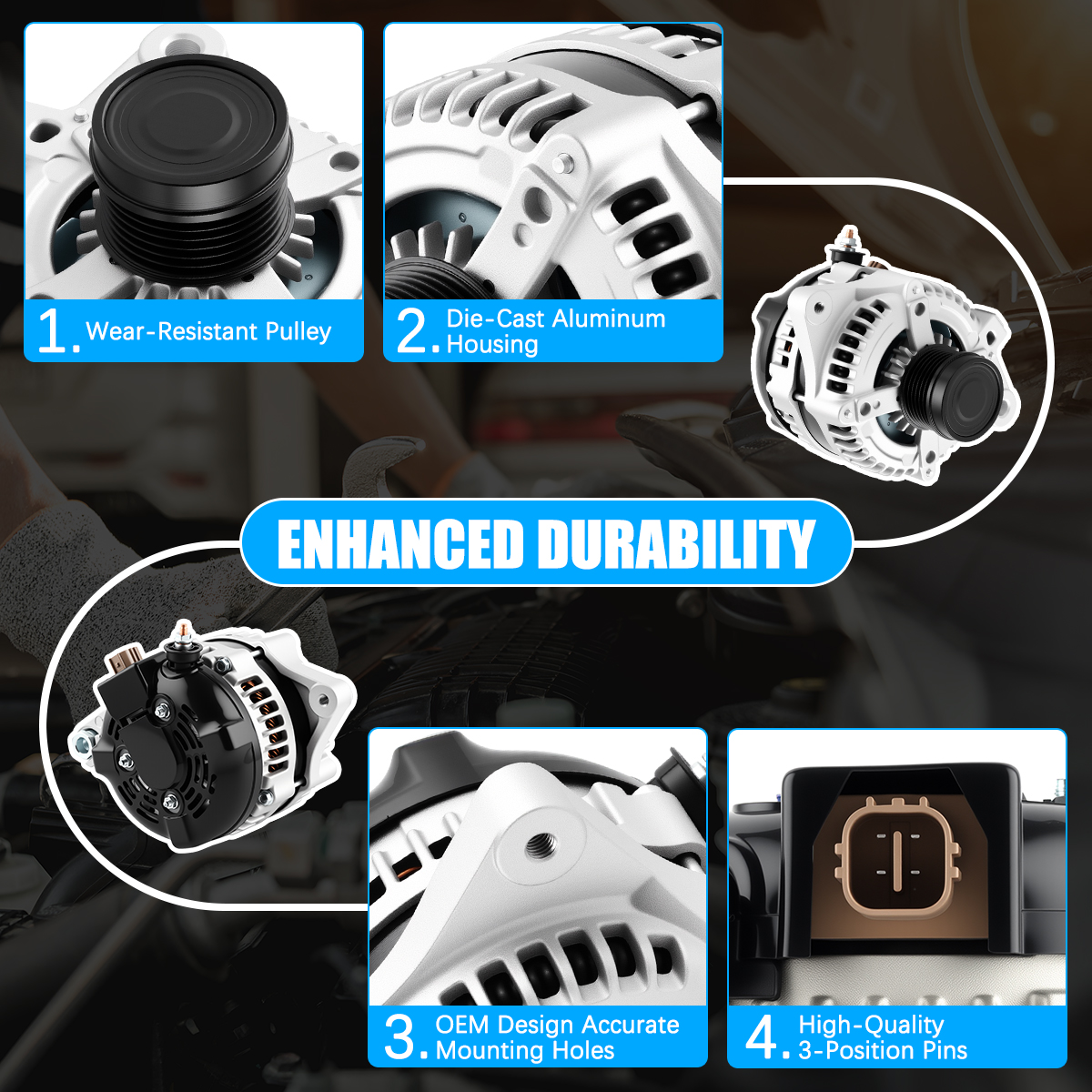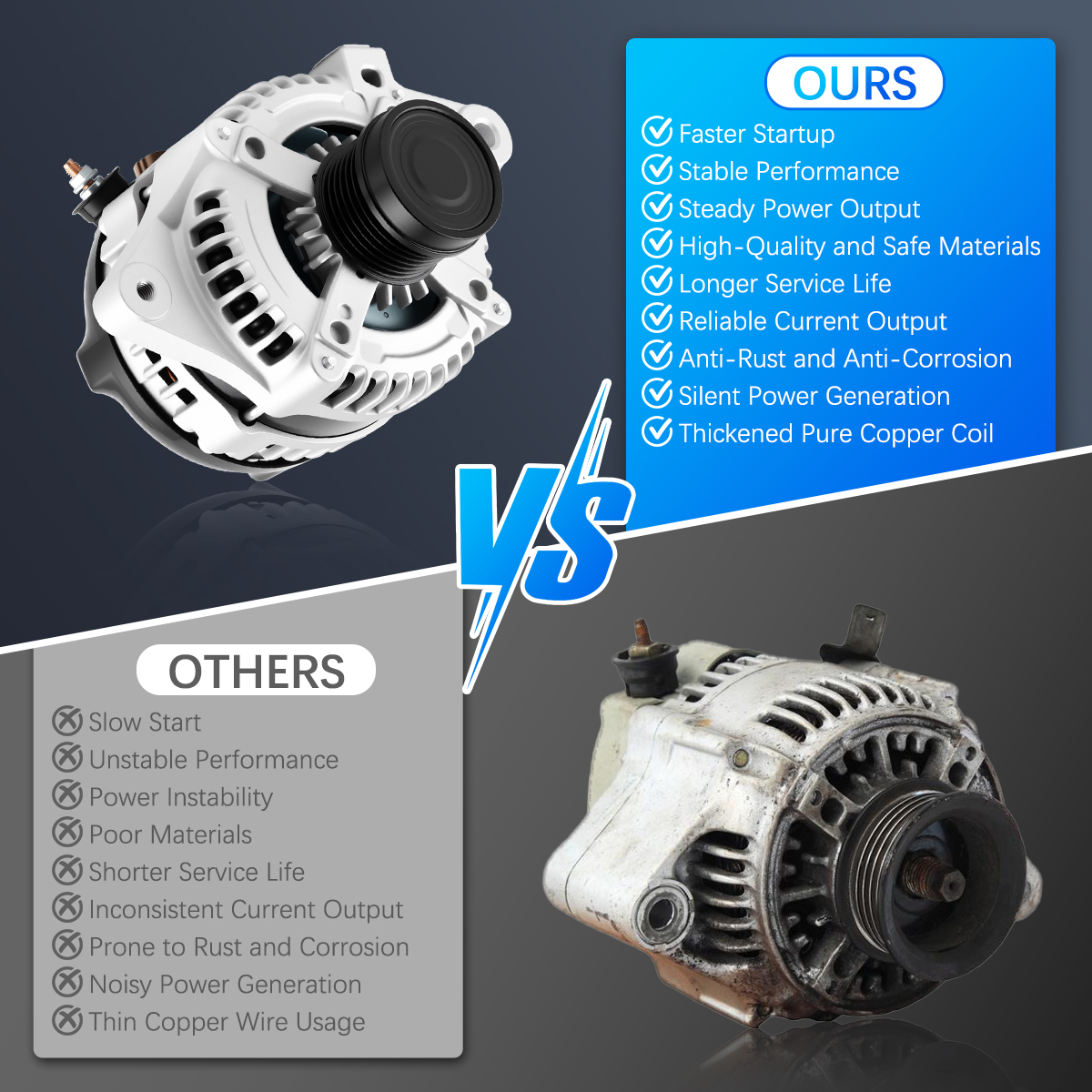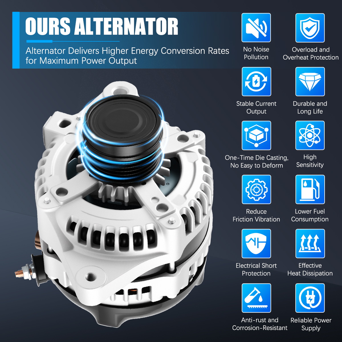 Rugged and stable car alternator, matched against OE originals for performance.
