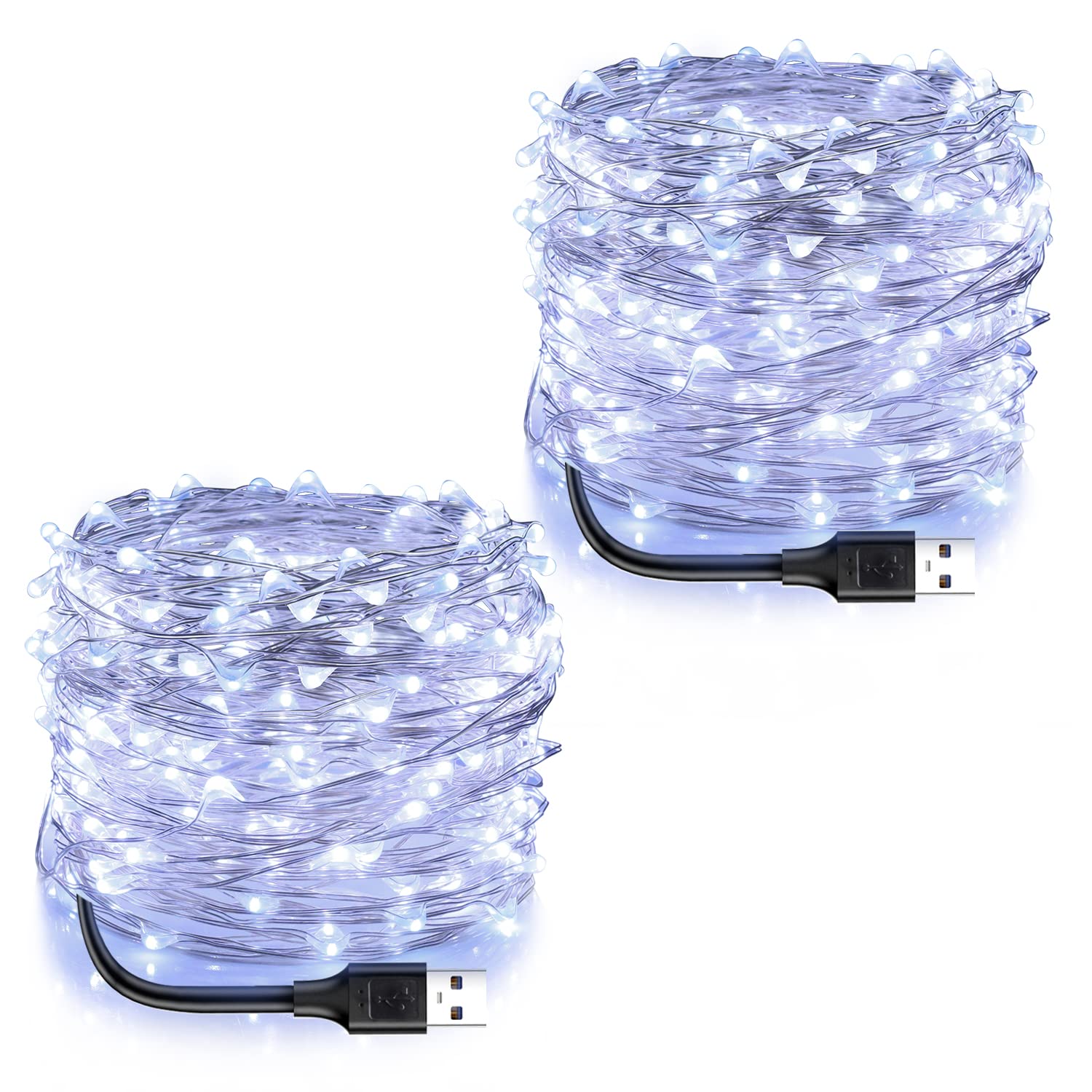 Flexible Wire Lights:The bedroom fairy lights are bendable, the wire can be easily molded into any shape you desire. Unlimited creativity, your only limit is your imagination.Safe to Touch:Adopt high quality copper wire and LED beads, the fairy lights are low heat emission, which is safe to use without risk of burns even after many hours working.IP44 Waterproof:The led Christmas lights are IP44 waterproof that could stand light rain. But the USB interface is not waterproof, please keep the USB interface away from water.Multiple Charging Methods:You can connect the USB interface directly to a portable power bank or laptop and use the firefly lights whenever wherever you like. No need batteries, more money-saving.Adding AmbienceCool white fairy lights are ideal to add ambience for Valentine's Day, Halloween, Thanksgiving, Christmas, Wedding, Birthday Party, Graduation Party, Marriage Proposal etc.Specifications:Package: 2 PackMode: Steady OnColor: Cool WhiteLength: 33ft/ 10mLED Quantity: 100 bulbsLEDs Space: 10cm / 4 inchesWattage: 0.06w/ledPower Supply: 5VPowered by: USB Interface