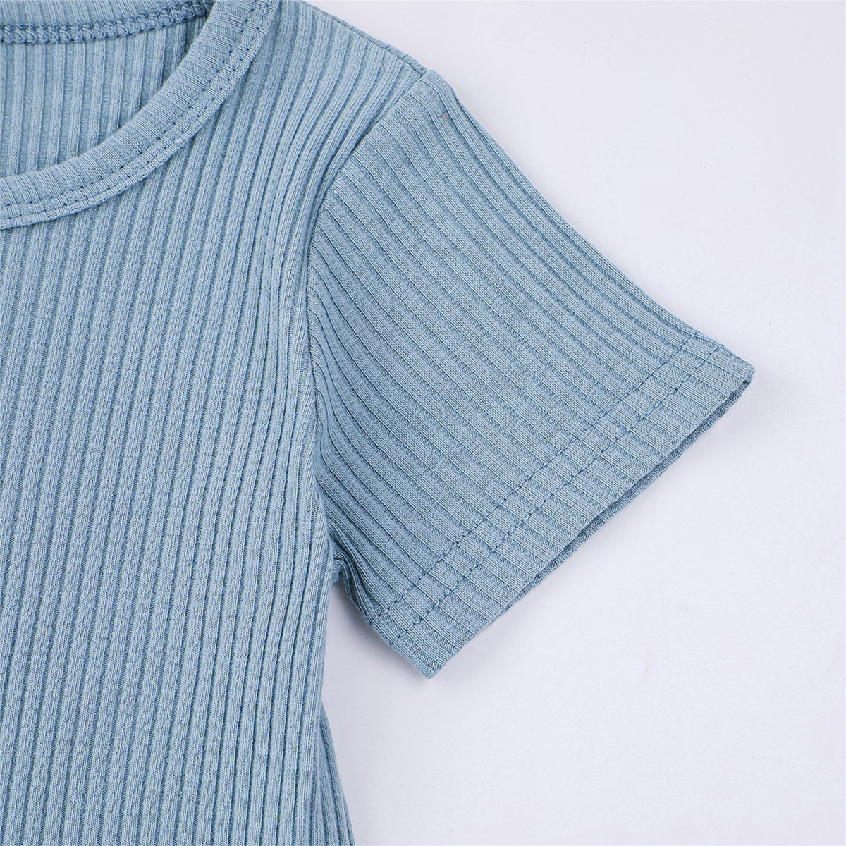 Features : Season: Summer Occasion: Daily Exact Material: Cotton Blend Style: Casual Pattern Type: Solid Decoration: Patchwork Collar: O-Neck Sleeve Length: Short Sleeve Sleeve Type: Regular Size chart: Attention plz: If your kid is chubby, we recomend choosing a larger size, thanks.